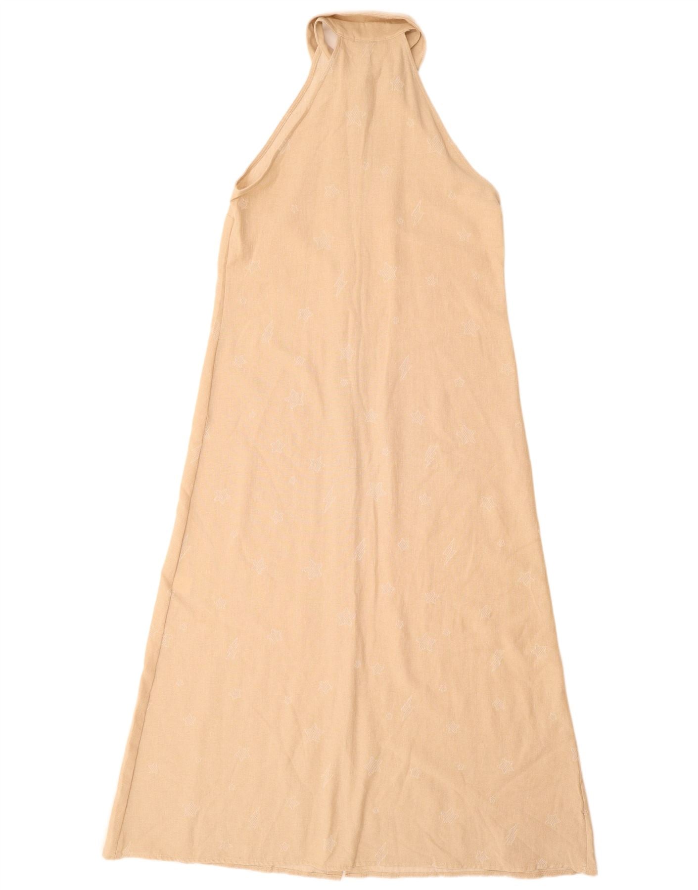 KIKISIX Womens Abstract Pattern Sleeveless Maxi Dress UK 14 Medium Beige