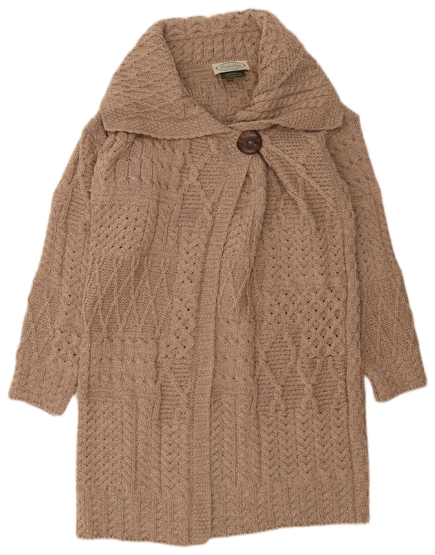 KILLARNEY Womens Longline Cardigan Sweater UK 16 Large Beige Merino Wool