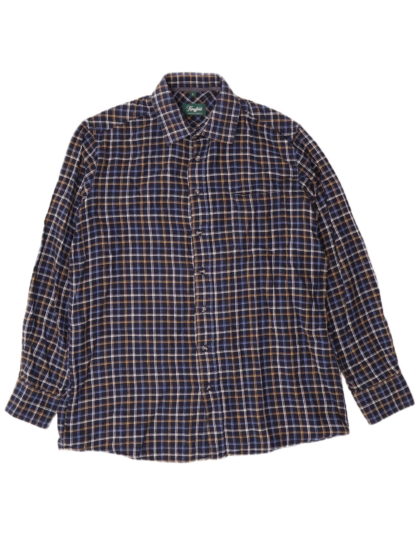 KINGFIELD Mens Flannel Shirt Large Navy Blue Check Cotton