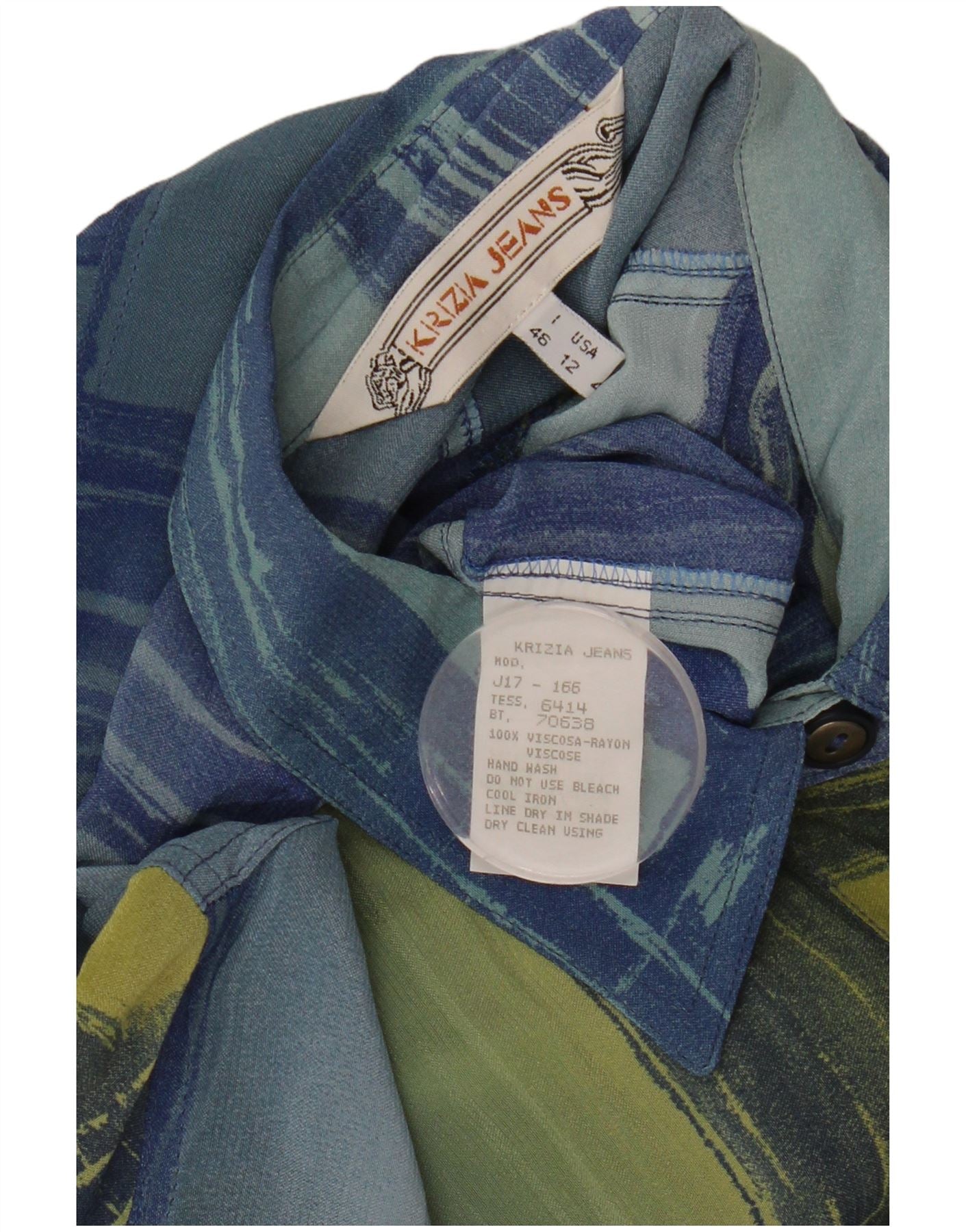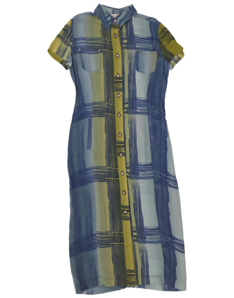 KRIZIA JEANS Womens Maxi Shirt Dress IT 46 Large Blue Plaid Viscose