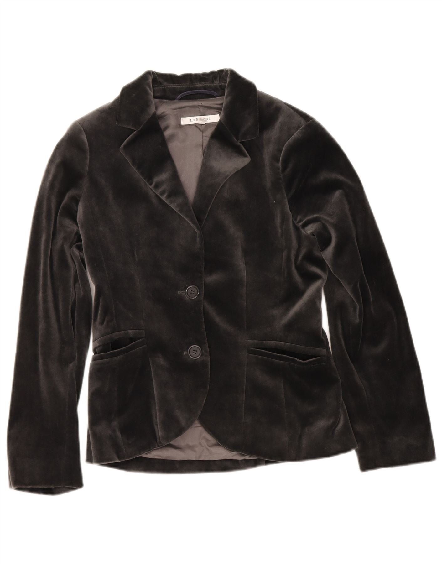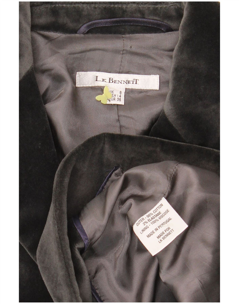 L.K. BENNETT Womens 2 Button Velvet Blazer Jacket UK 8 Small Grey Cotton