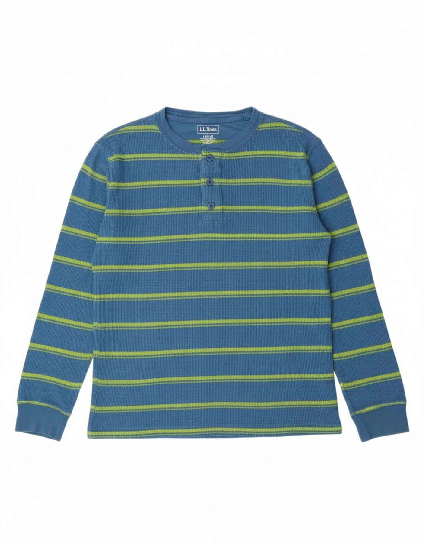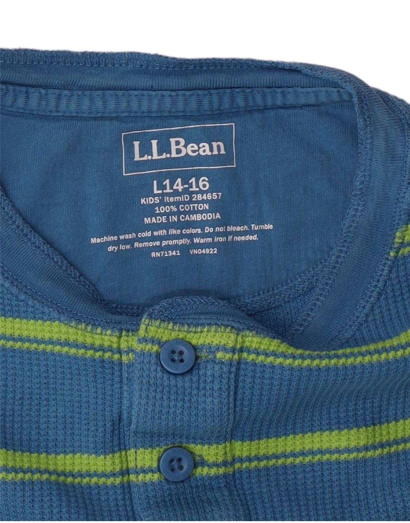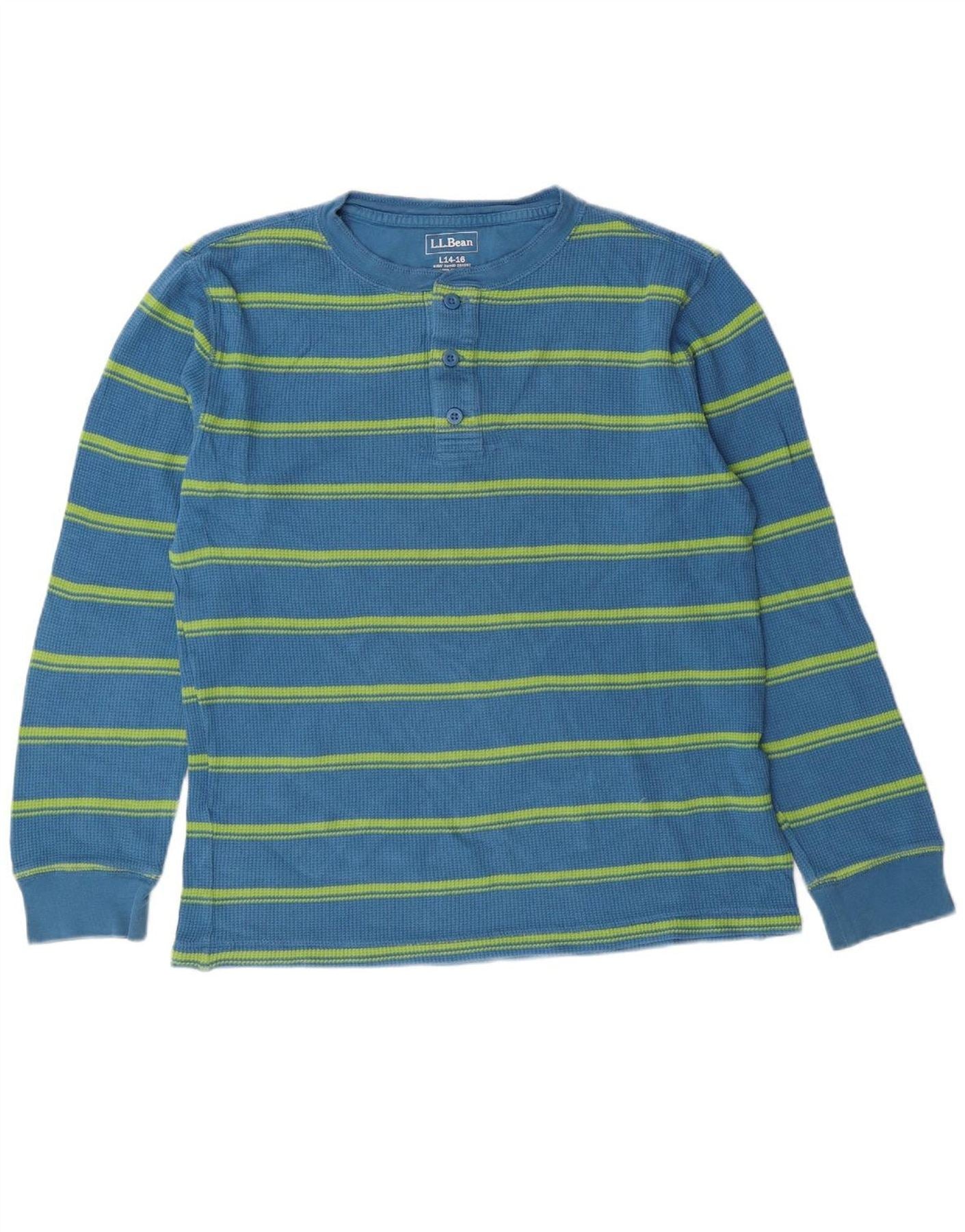 L.L.BEAN Boys Top Long Sleeve 14-15 Years Large Blue Striped Cotton