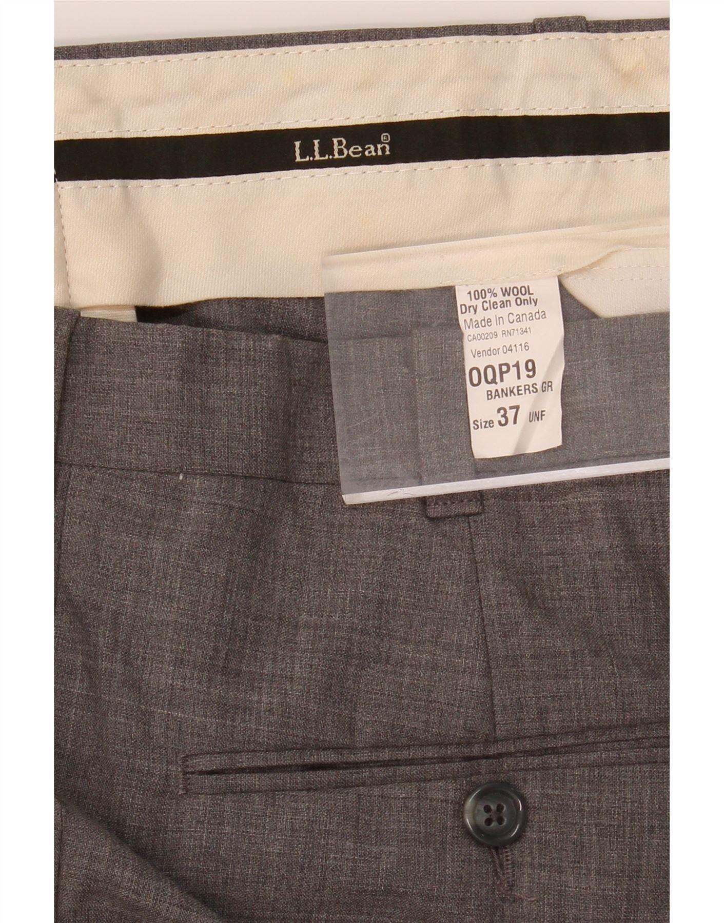 - AI Description: Elevate your wardrobe with these classic L.L.Bean trousers. Crafted from 100% wool tweed in a versatile grey, these regular fit trousers offer both comfort and style. Featuring a button closure, pockets and cuffed hems, they are ideal for any occasion. These pre-owned trousers are in excellent condition. Label size 37. Made in Canada. Dry clean only.