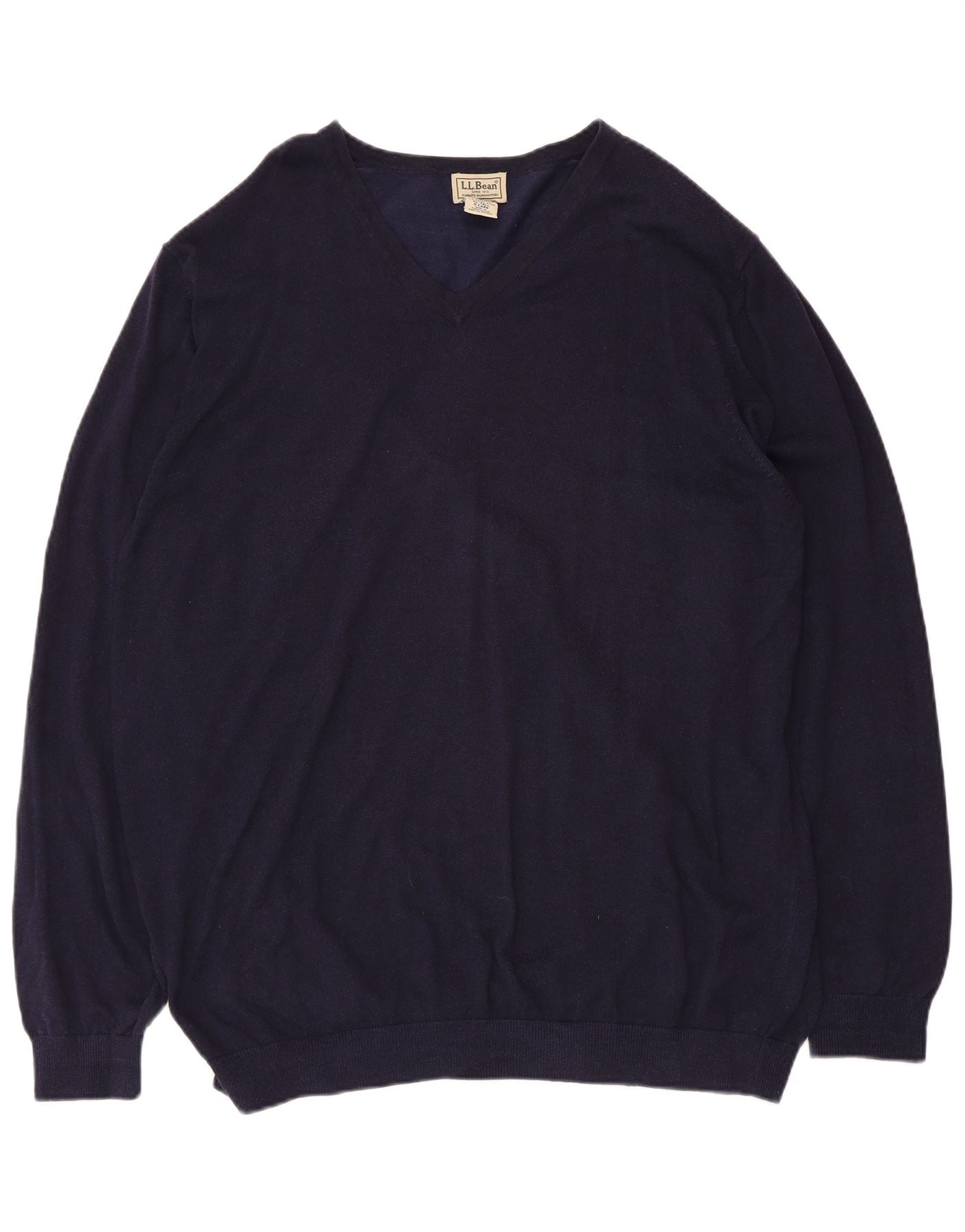 L.L.Bean Mens Tall V-Neck Jumper Sweater XL Navy Blue Cotton