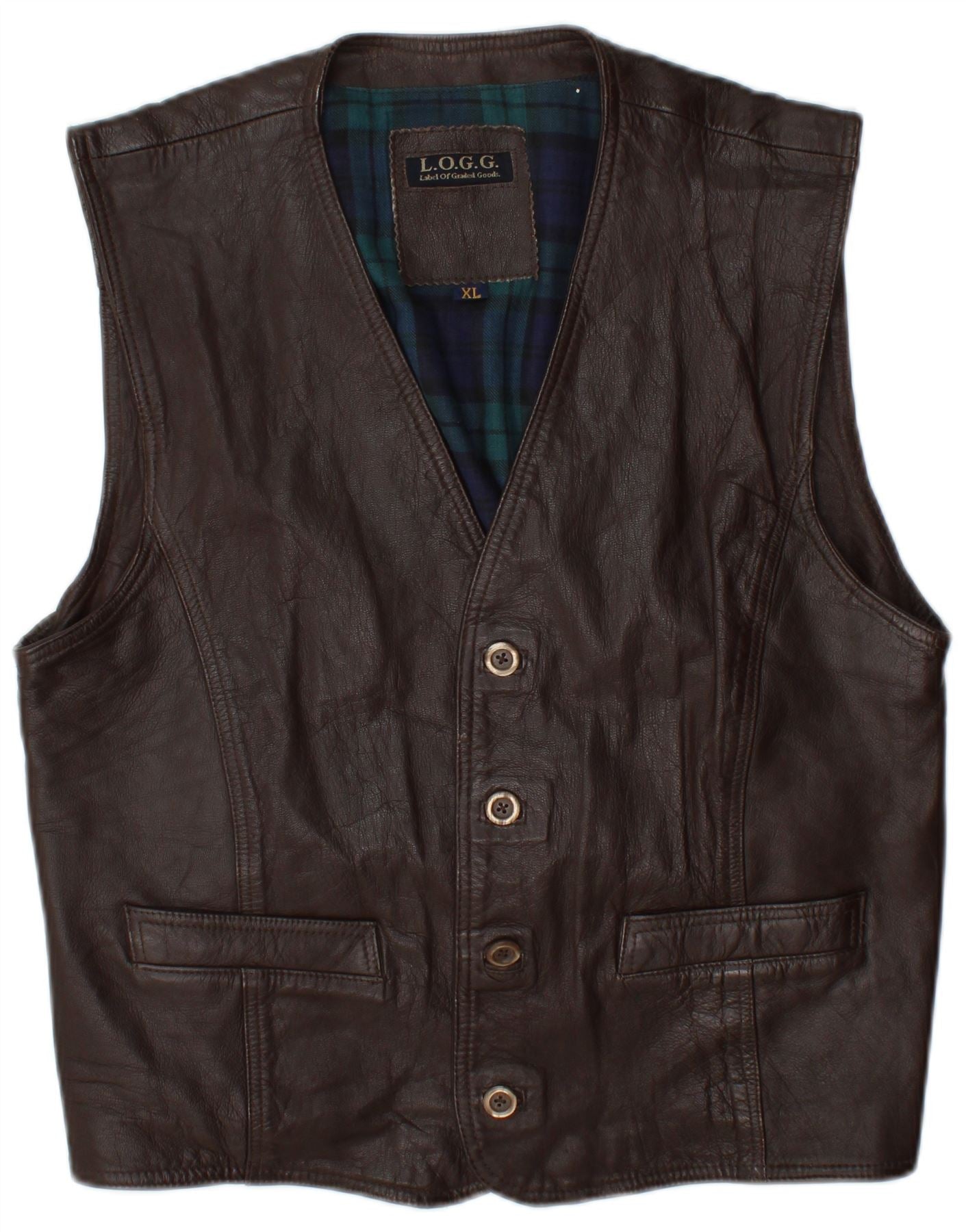 L.O.G.G Mens Leather Waistcoat XL Brown Check Leather