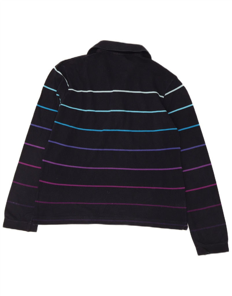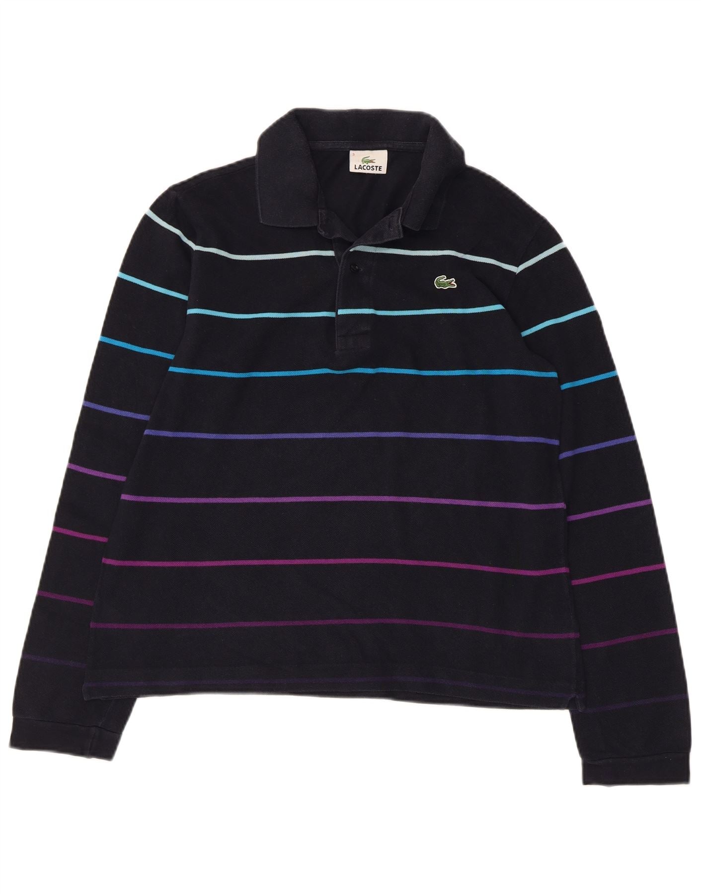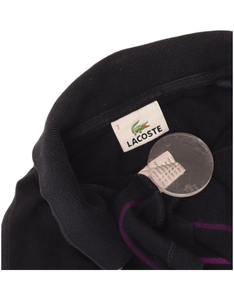 LACOSTE Mens Long Sleeve Polo Shirt Size 3 Small Navy Blue Striped Cotton