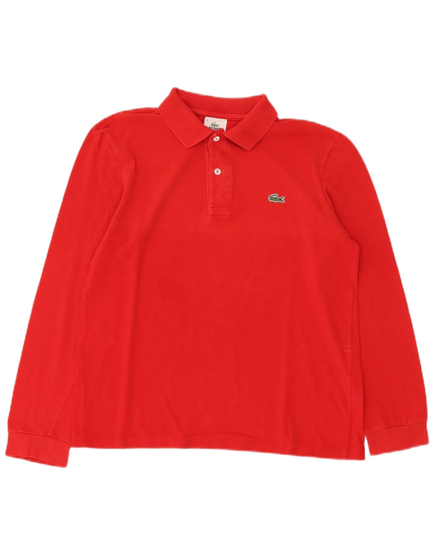 LACOSTE Mens Long Sleeve Polo Shirt Size 3 Small Red Cotton