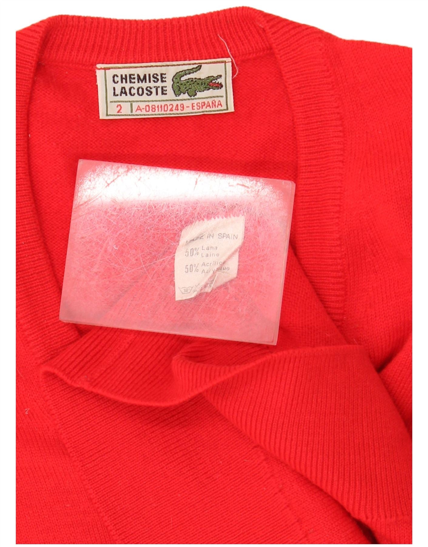 LACOSTE Mens Loose Fit V-Neck Jumper Sweater Size 2 XS Red Wool