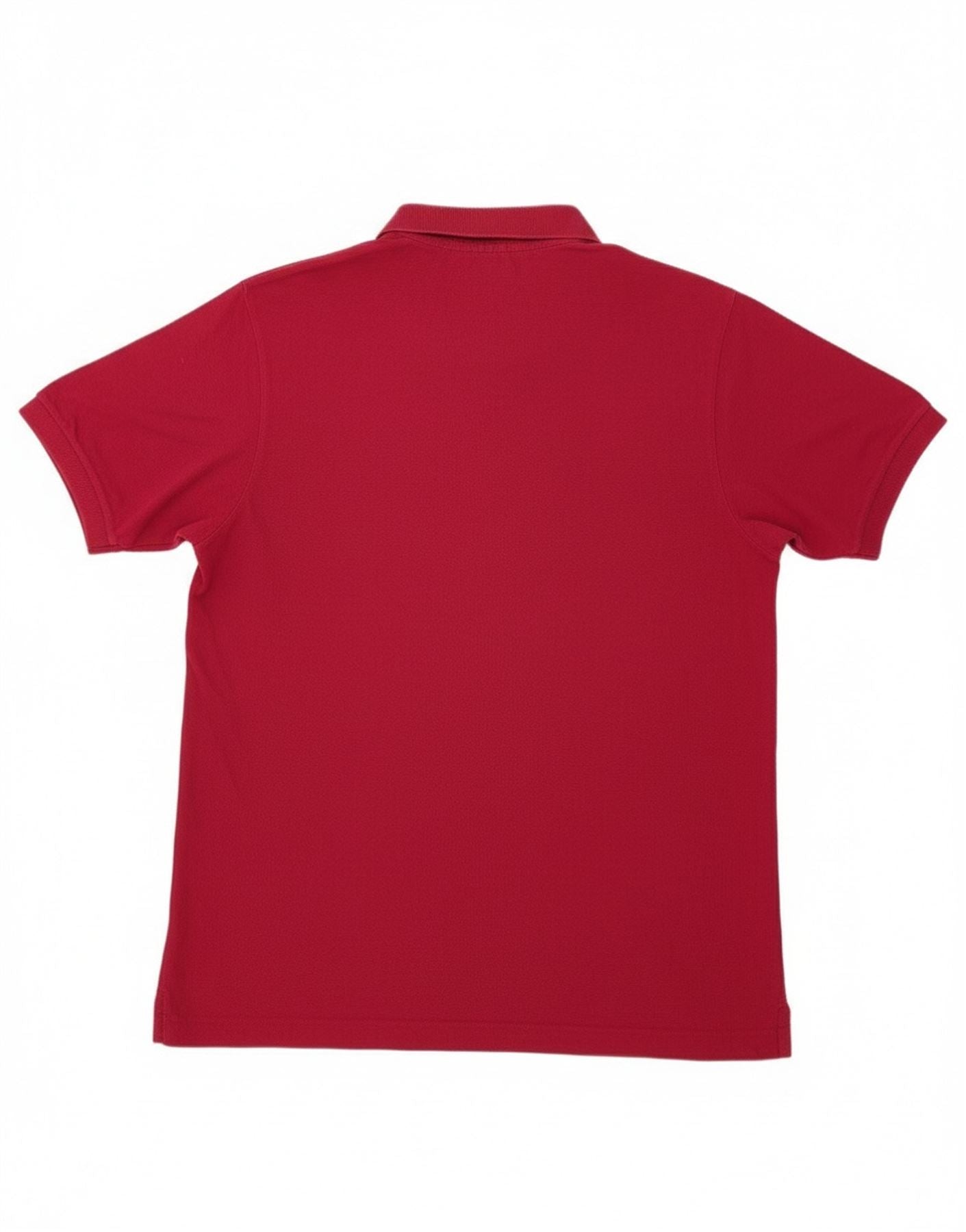 - AI Description: This Lacoste mens polo shirt is crafted from 100 percent cotton knit in a rich red hue. It features a classic collared neckline and a two-button placket for a timeless look. Short sleeves and a regular fit ensure comfortable wear. The iconic embroidered crocodile logo on the chest adds a signature touch. This classic style offers versatile, smart casual appeal.