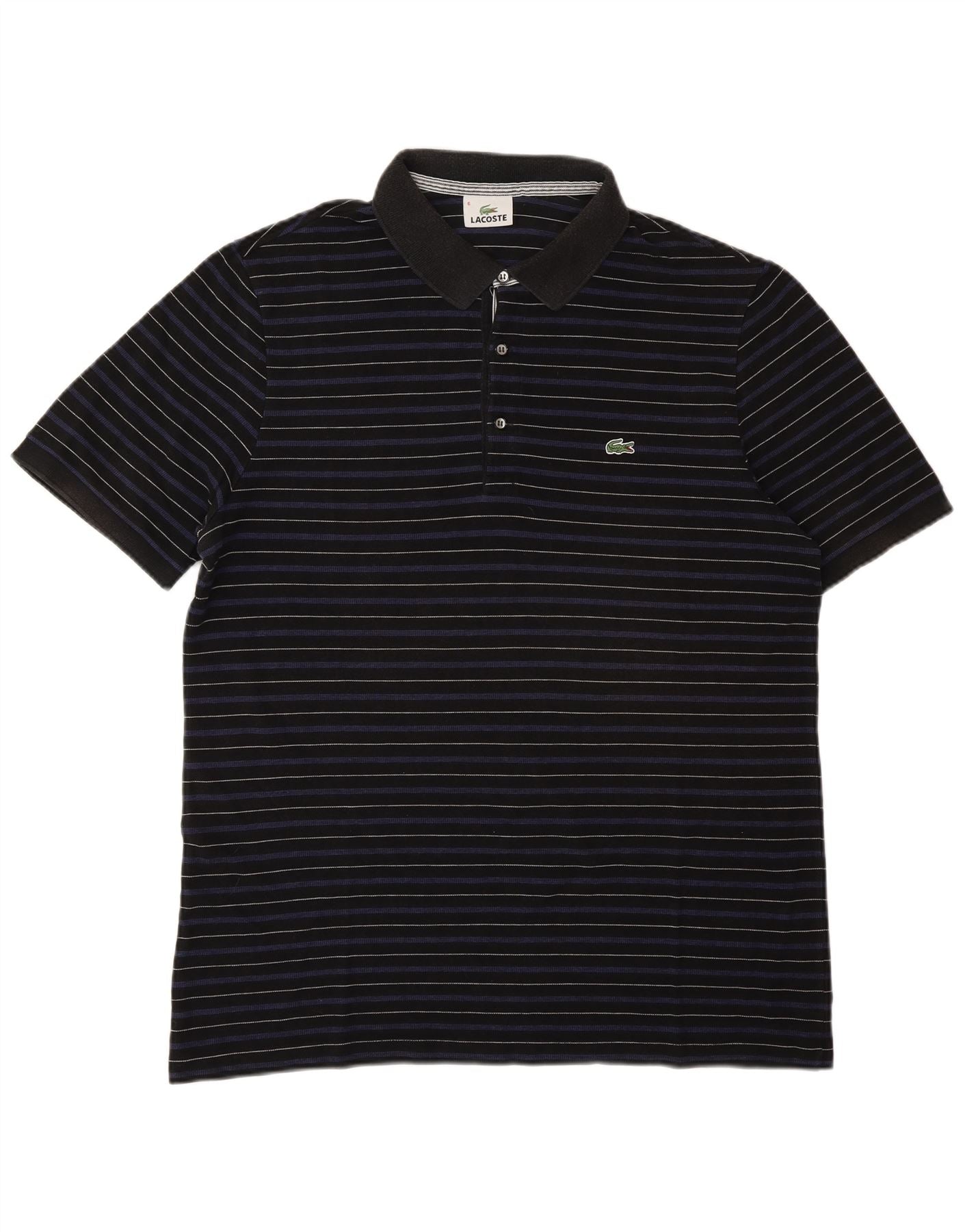 Lacoste Mens Polo Shirt Size 6 XL Navy Blue Striped Lyocell