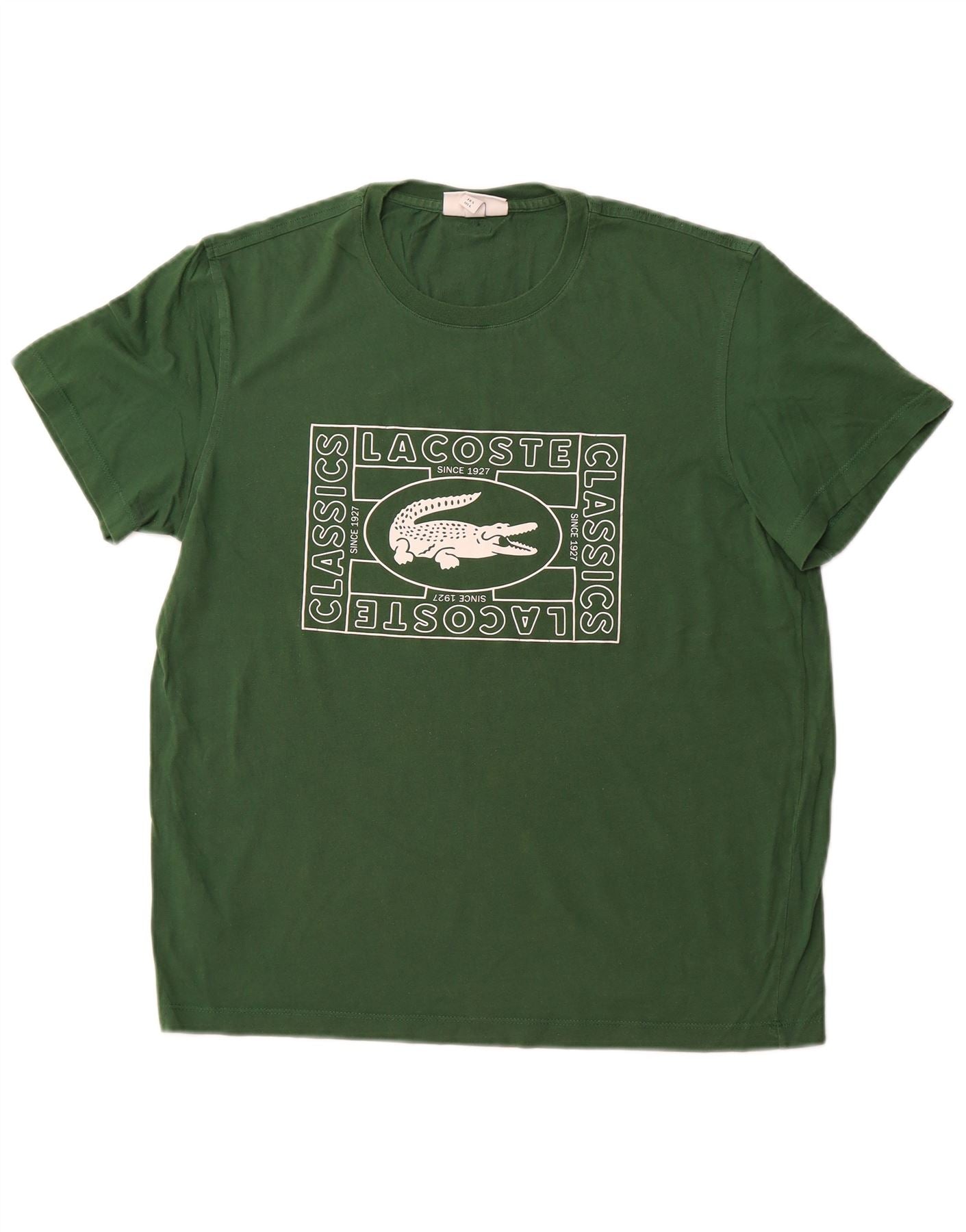 LACOSTE Mens Regular Fit Graphic T-Shirt Top Size 5 Large Green Cotton