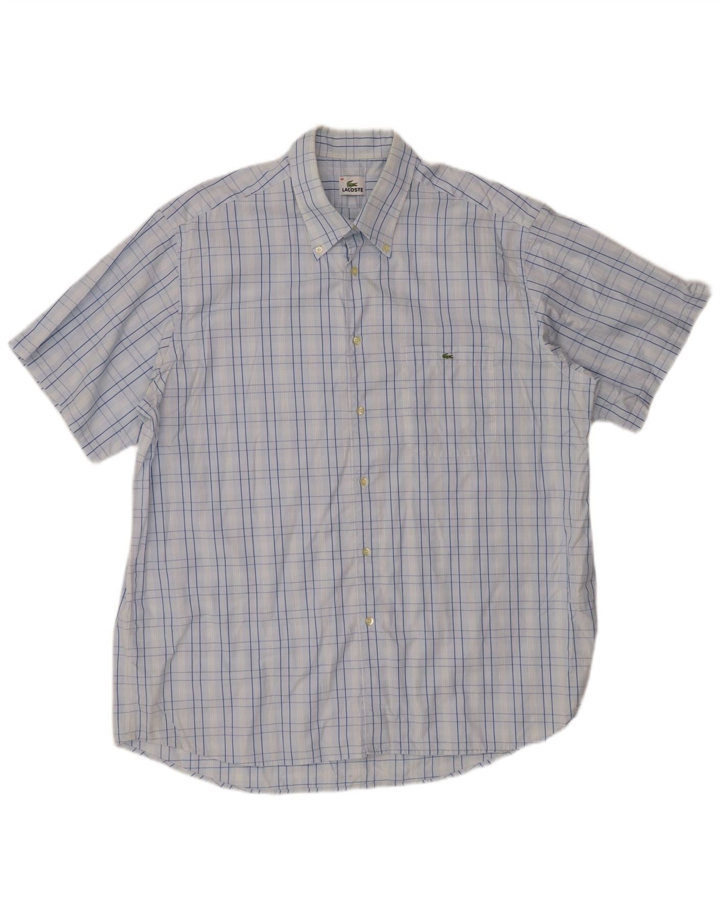 LACOSTE Mens Short Sleeve Shirt Size 46 2XL Blue Check Cotton