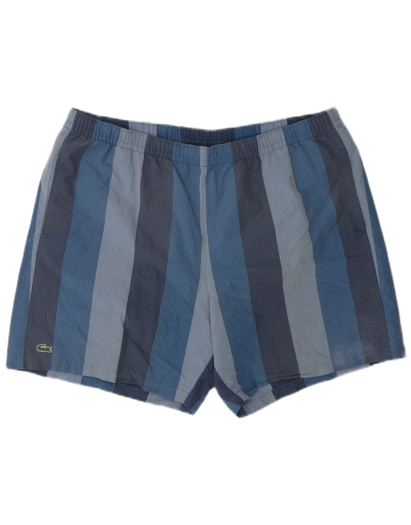 Lacoste Mens Swimming Shorts Size 8 3XL Blue Striped Cotton