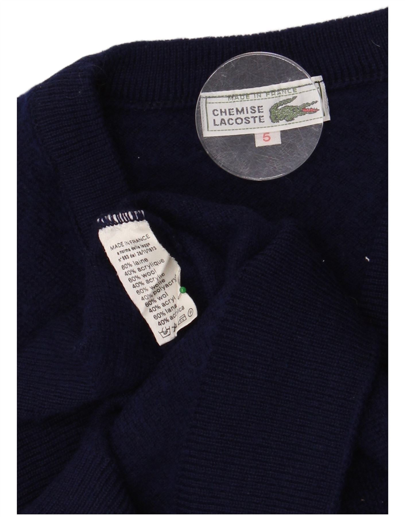 LACOSTE Mens Vest Tank Top Size 5 Large Navy Blue Wool