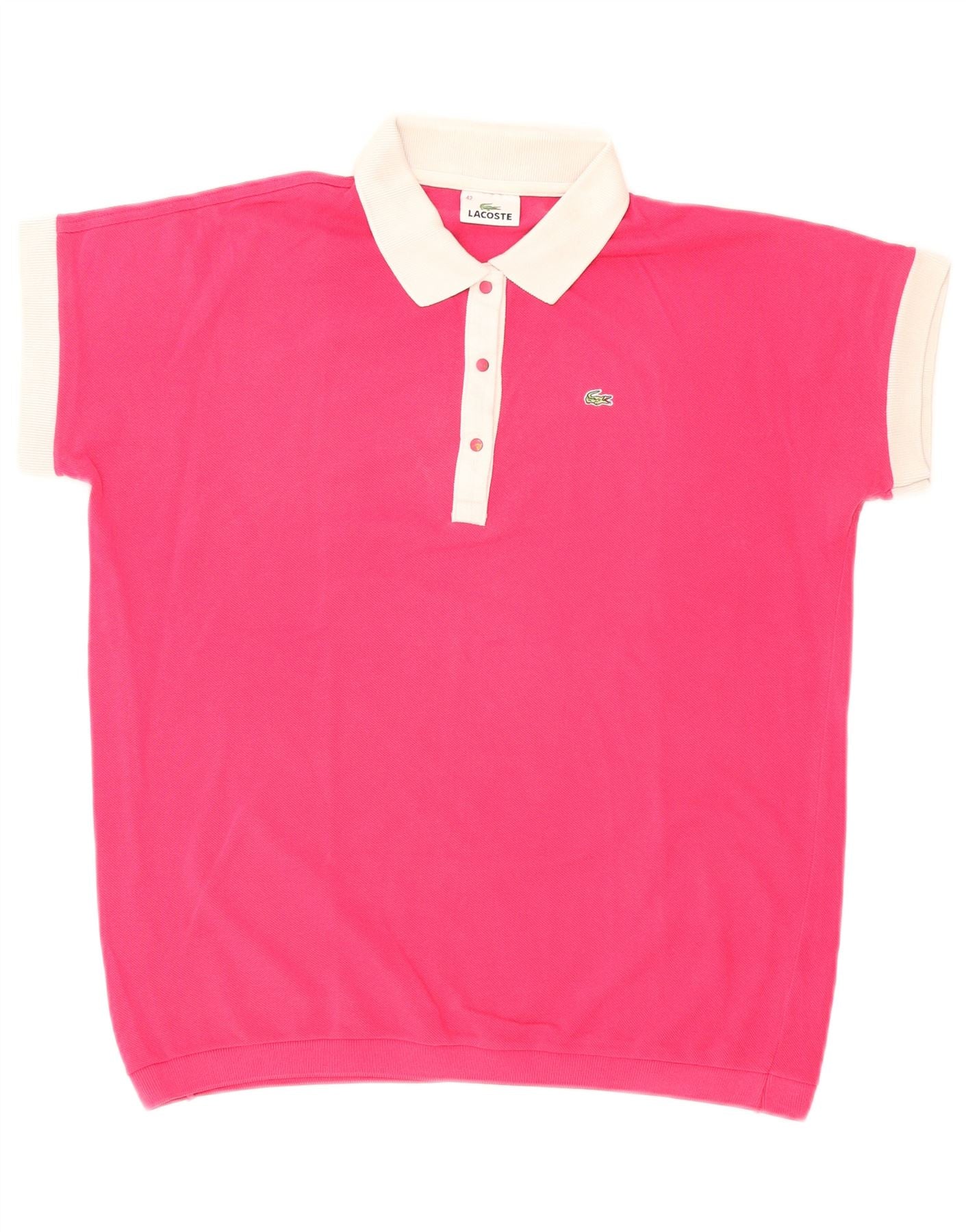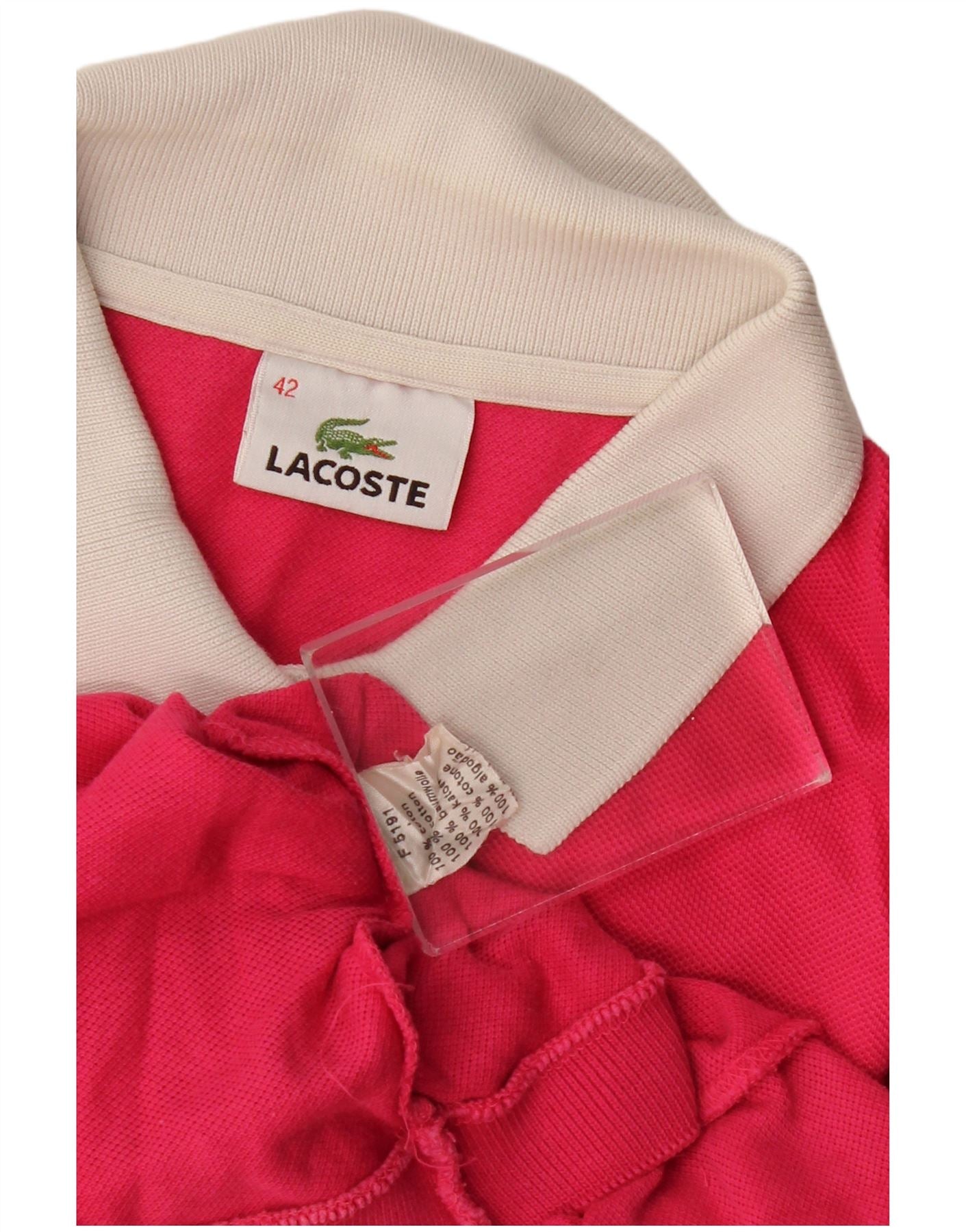 LACOSTE Womens Polo Shirt Size 42 Large Pink Colourblock Cotton