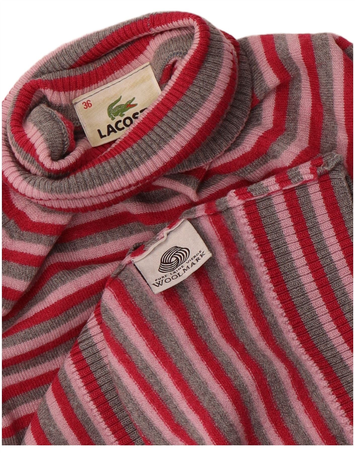 LACOSTE Womens Roll Neck Jumper Sweater Size 36 Small Multicoloured