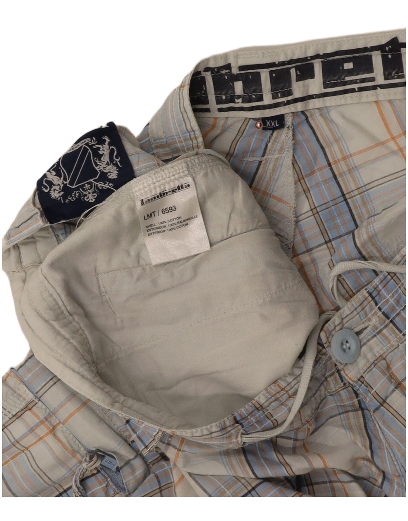 LAMBRETTA Mens Cargo Shorts 2XL W38 Blue Check Cotton