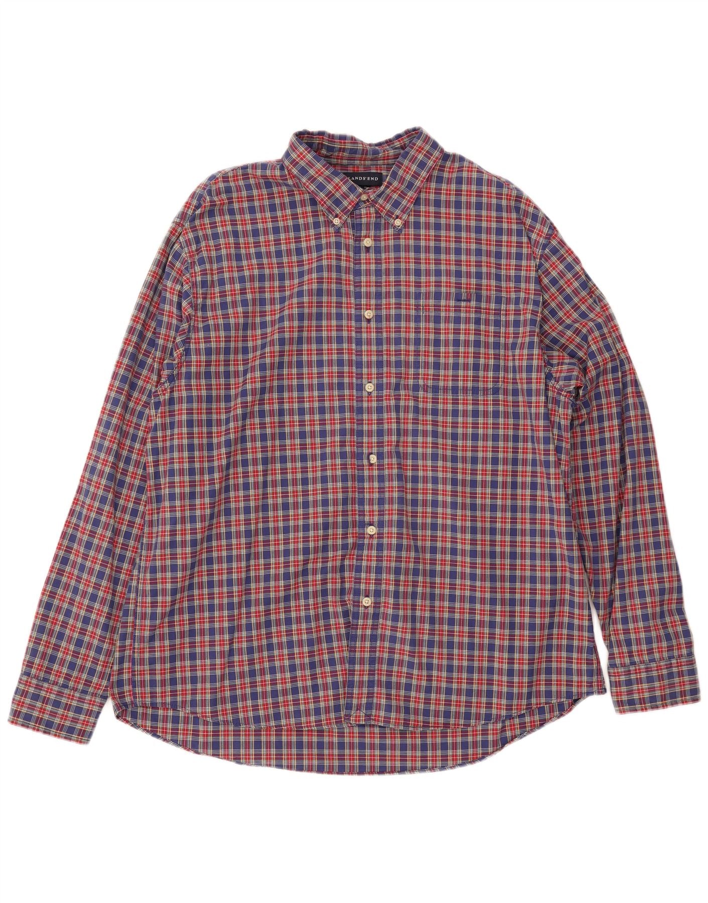 LANDS END Mens Flannel Shirt XL Red Check Cotton