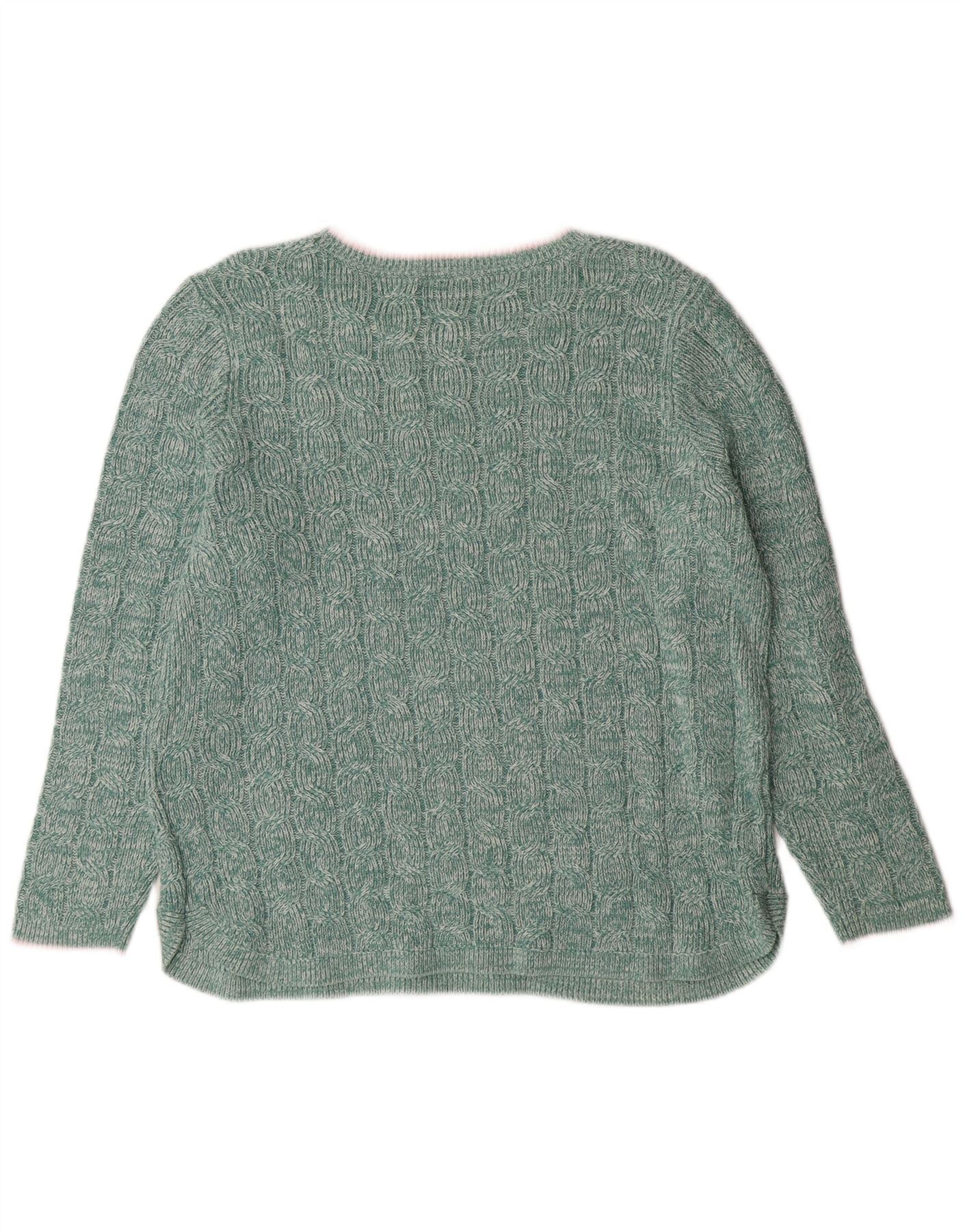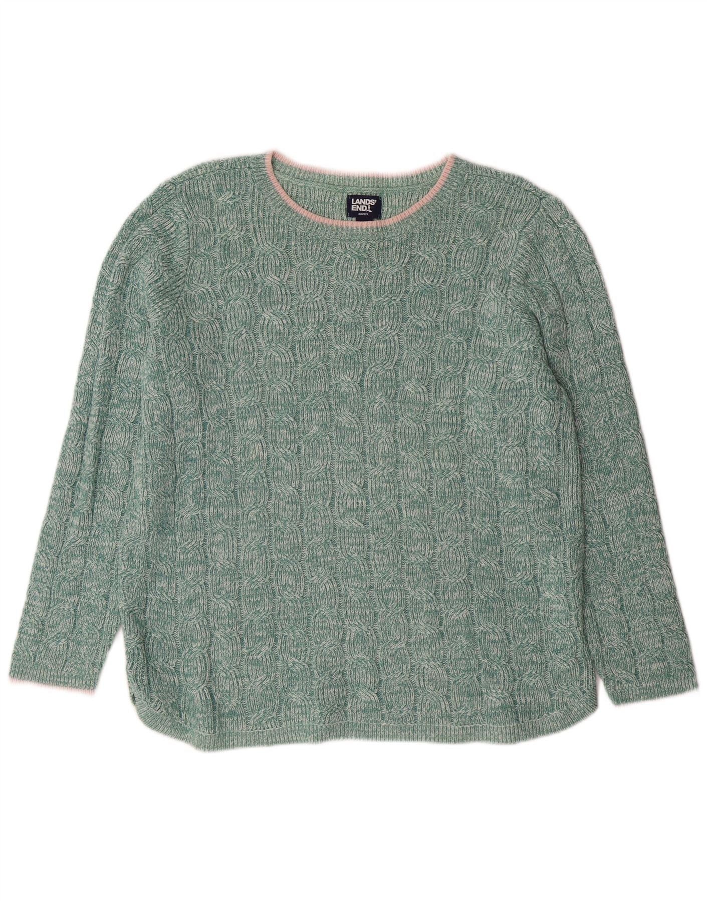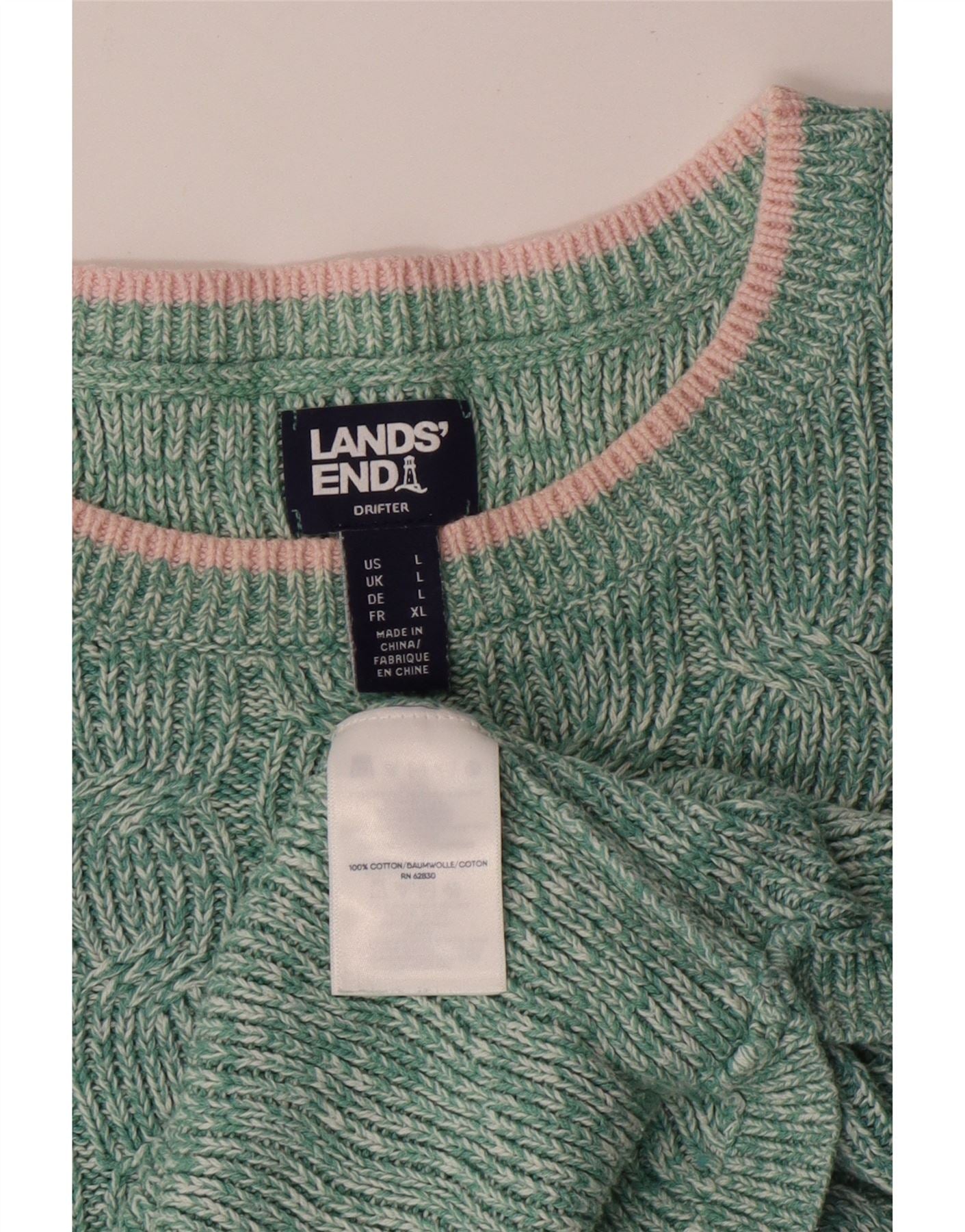 LANDS END Womens Boat Neck Jumper Sweater UK 16 Large Green Cotton