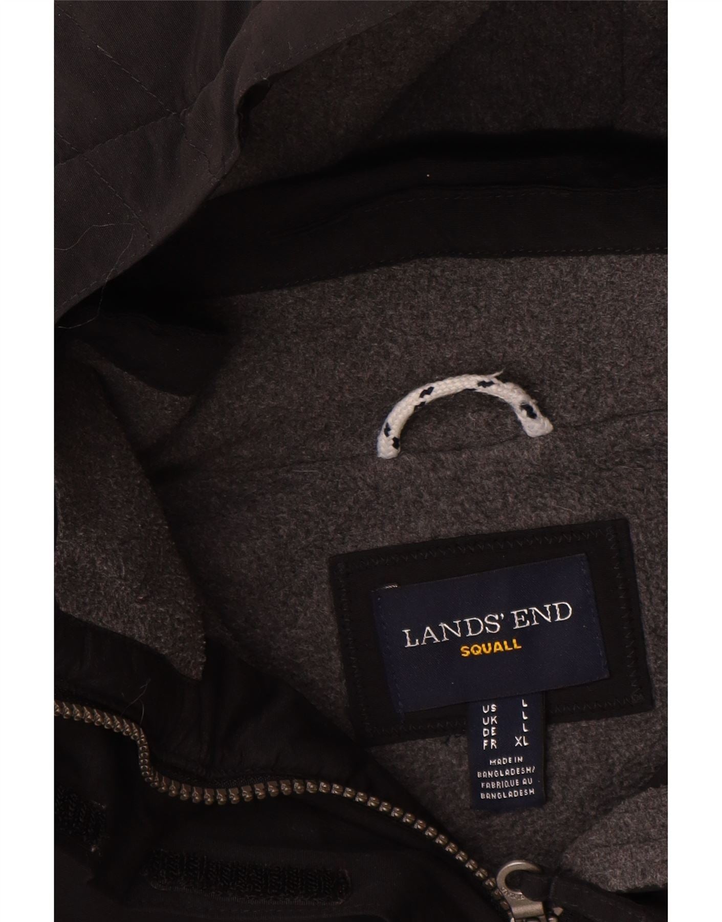 Lands End Womens Hooded Windbreaker Coat UK 16 Large Black Nylon