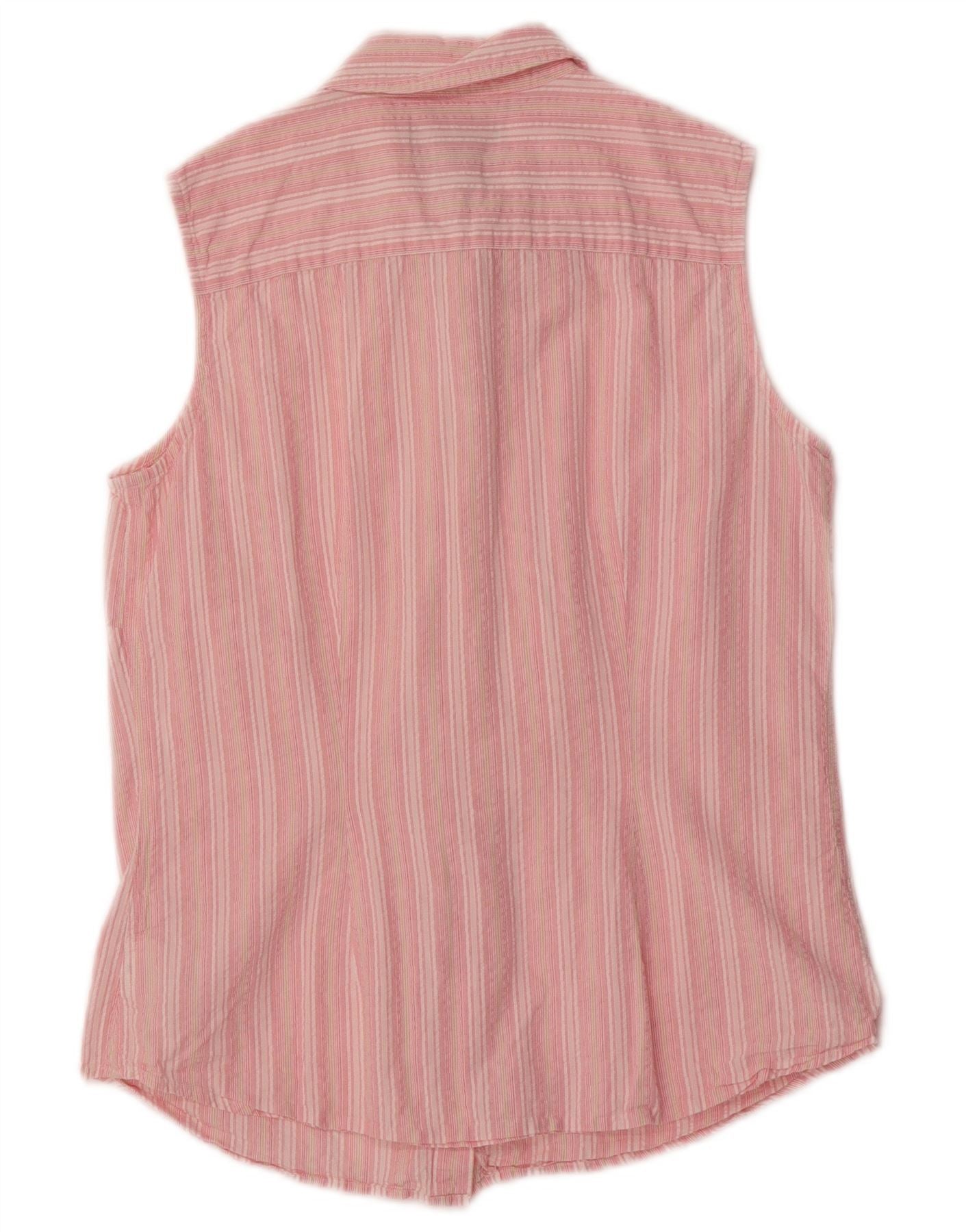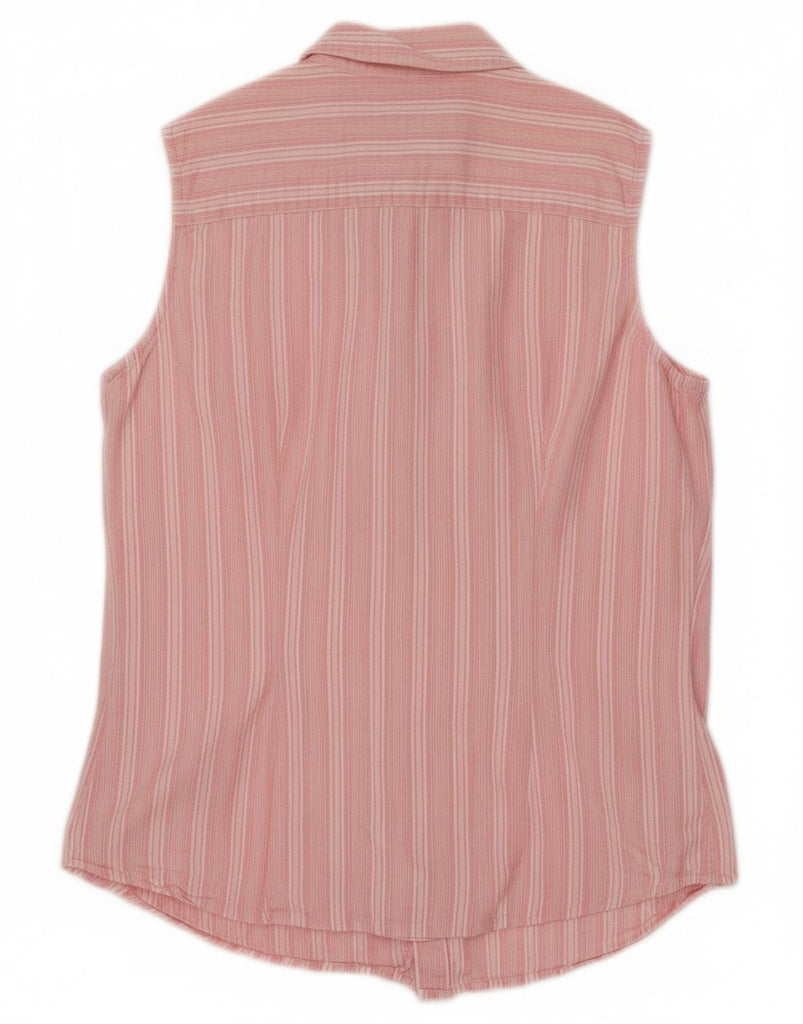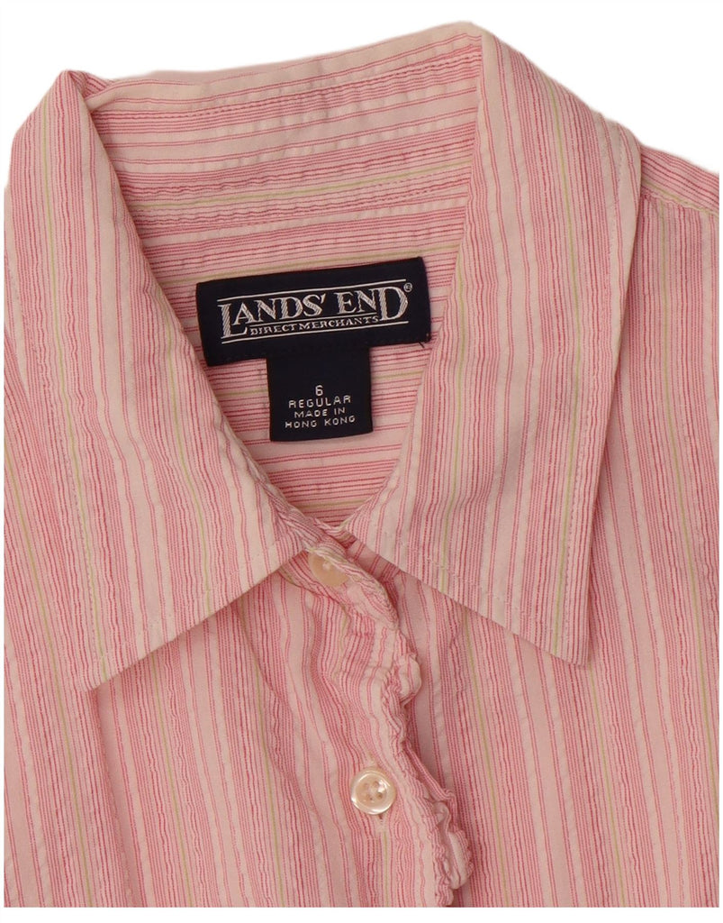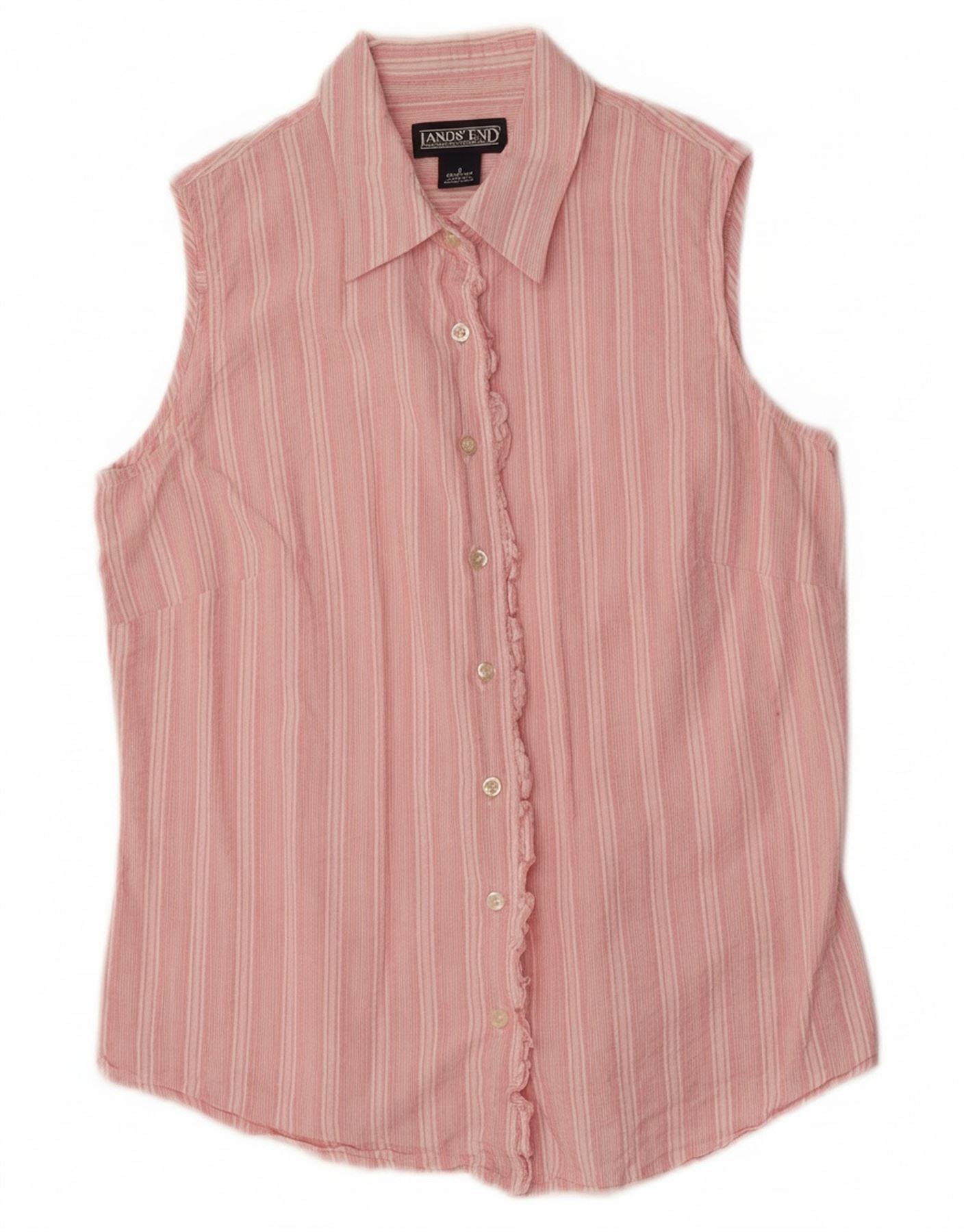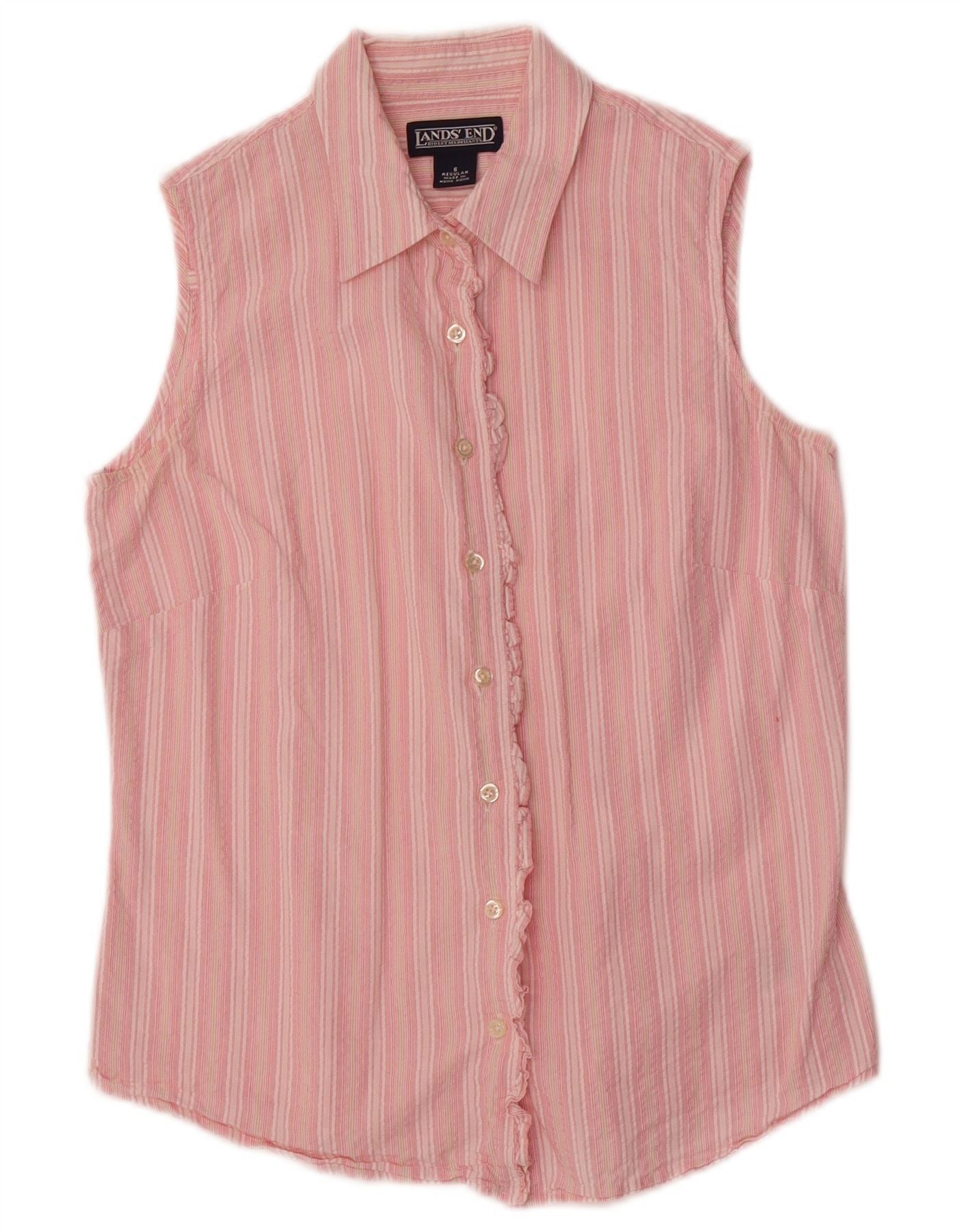 LANDS END Womens Sleeveless Ruffle Front Shirt US 6 Medium Pink Striped