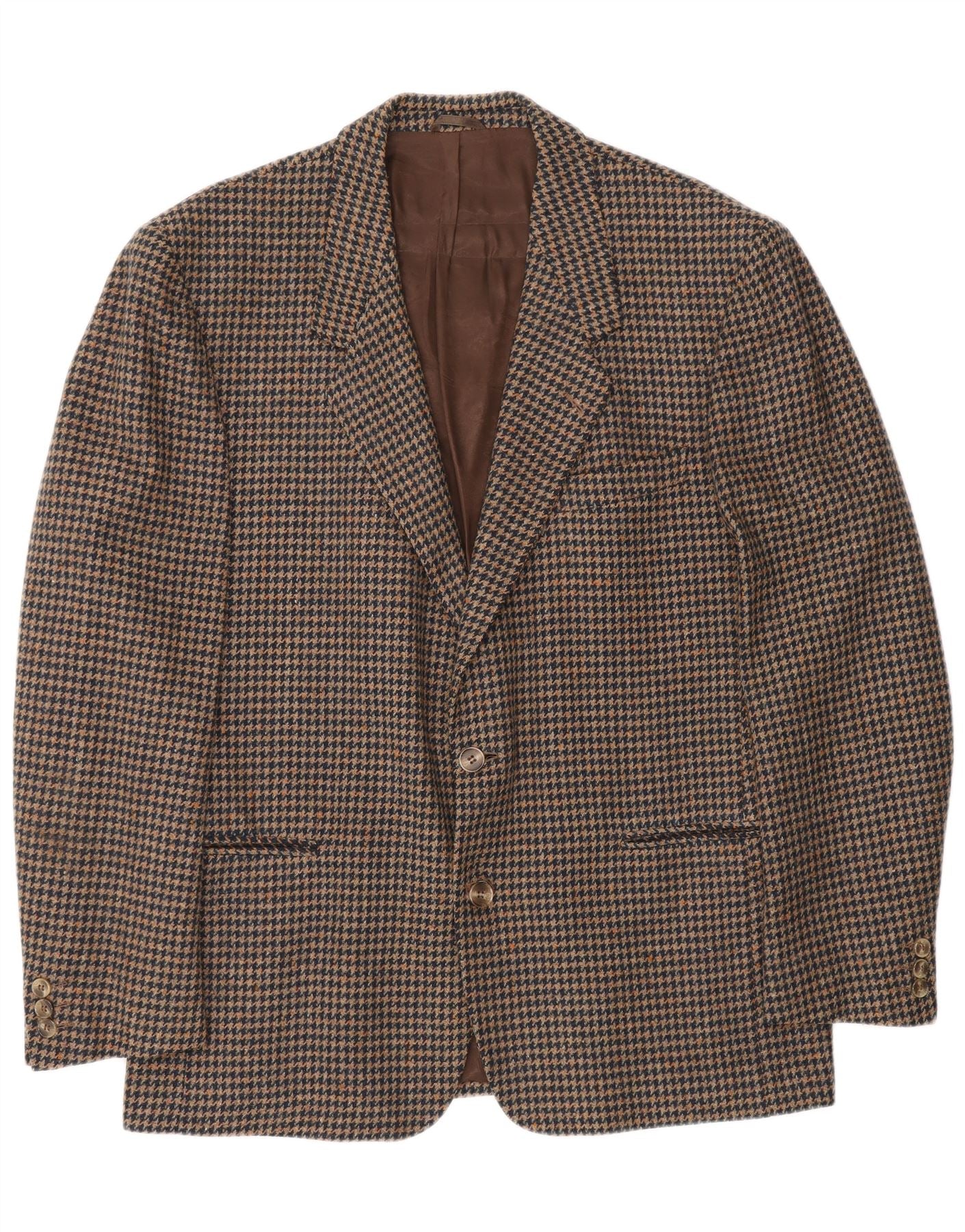 Lanificio Campore Mens 2 Button Blazer Jacket UK 40 Large Brown Houndstooth