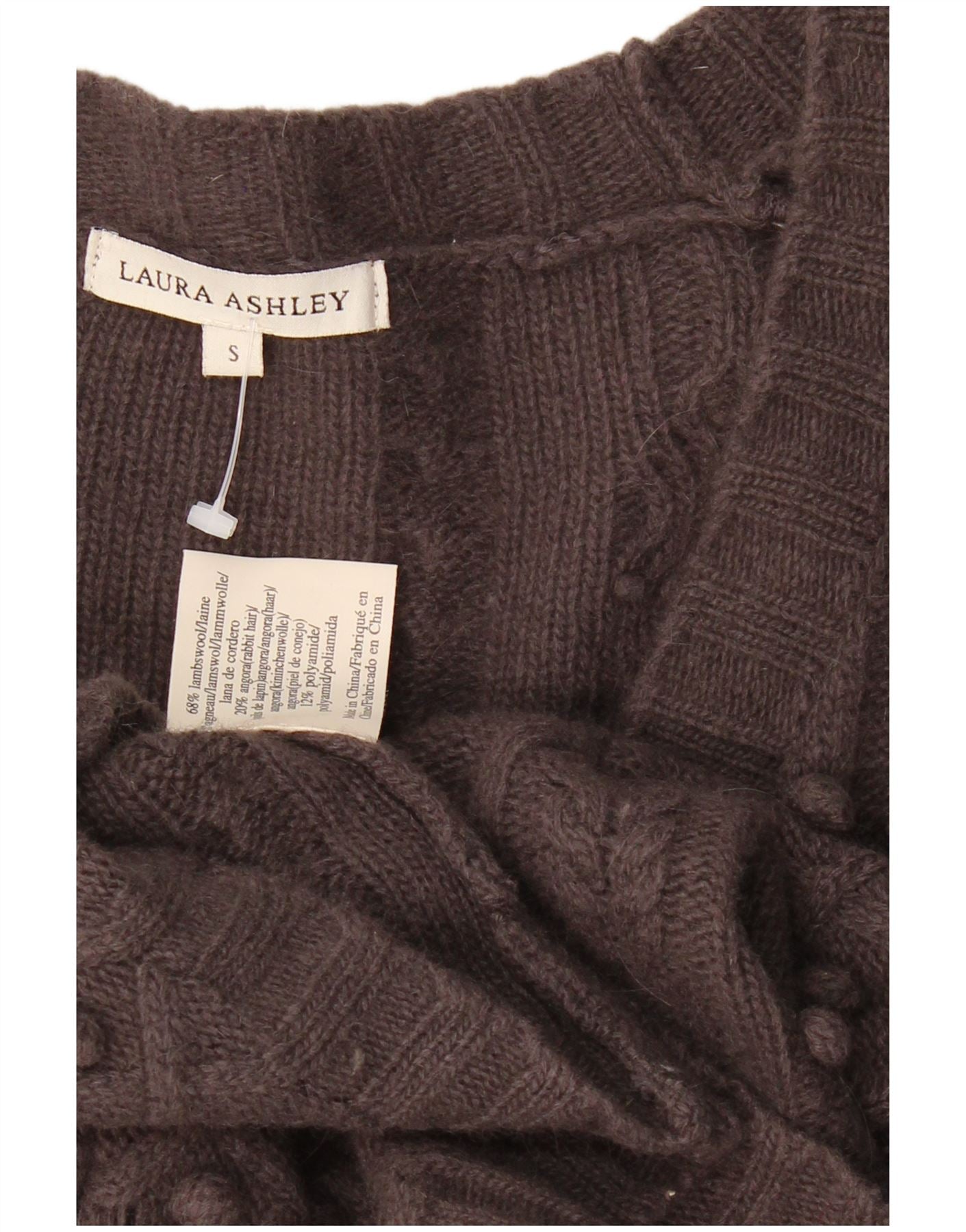 LAURA ASHLEY Womens Crop Cardigan Sweater UK 10 Small Brown Lambswool