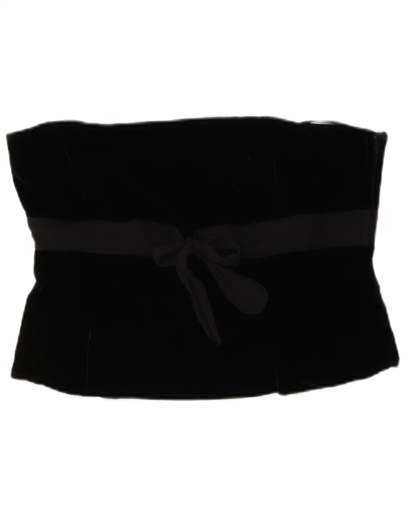 LAURA ASHLEY Womens Velvet Corset Top UK 14 Medium Black Viscose