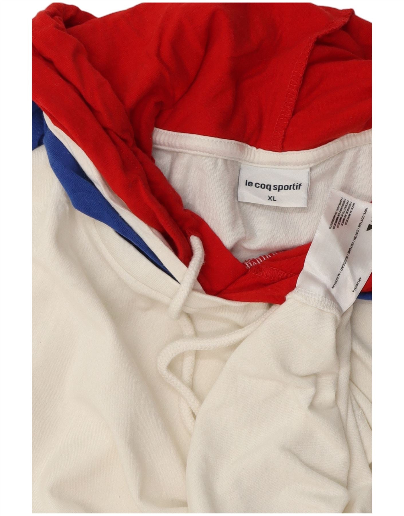 LE COQ SPORTIF Mens Hooded T-Shirt Top XL White Colourblock Cotton