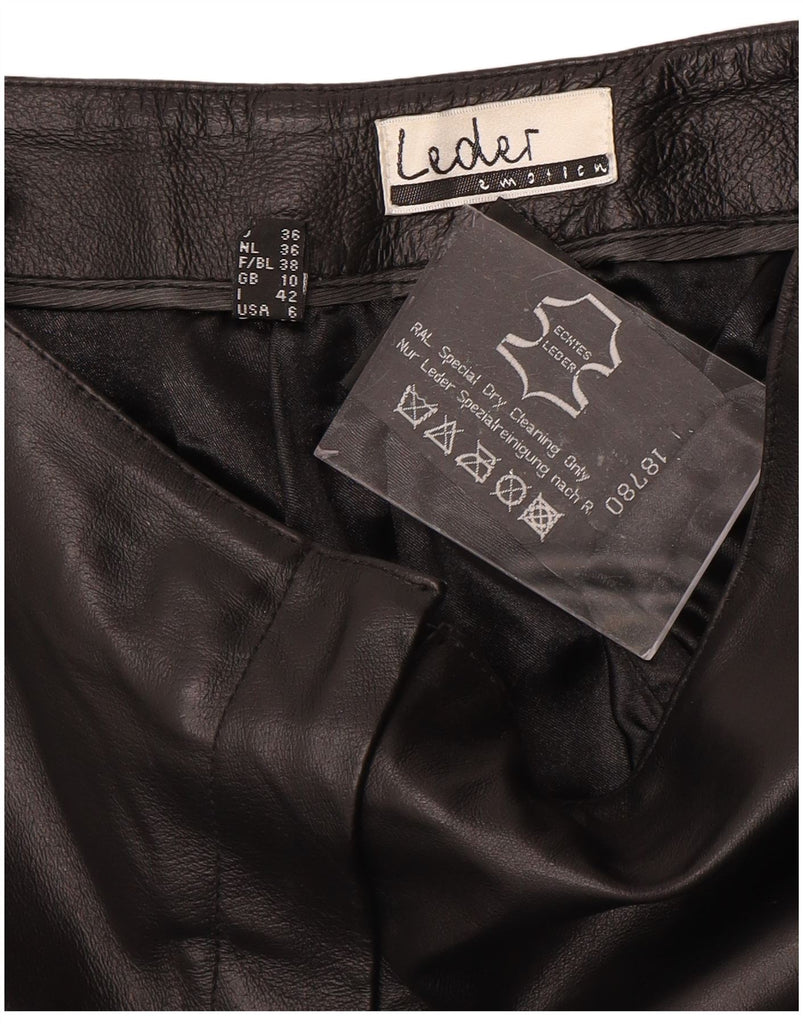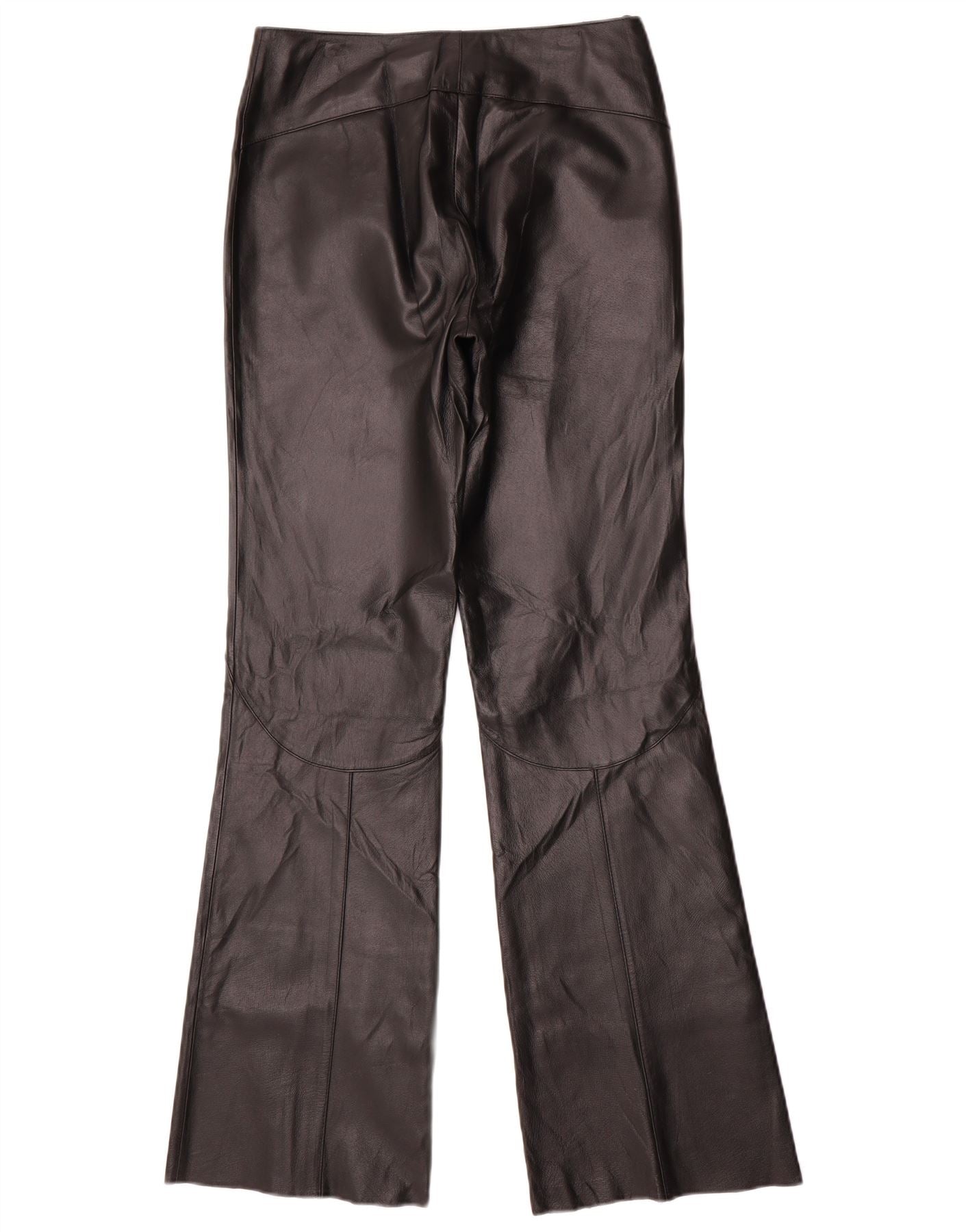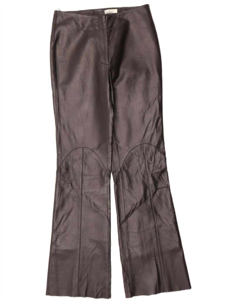 LEADER Womens Bootcut Leather Trousers UK 10 Small W28 L34 Black Leather