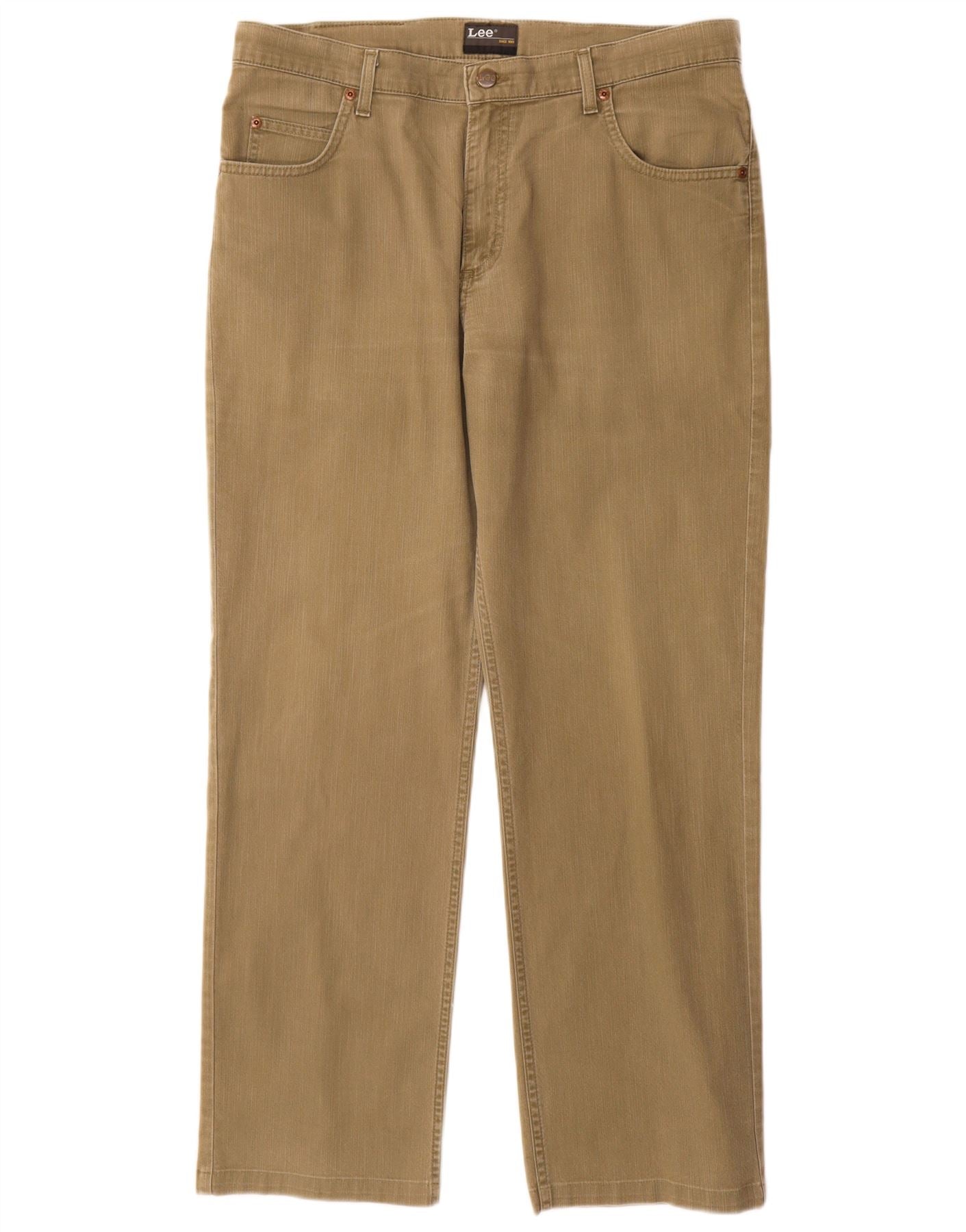 LEE Mens Brooklyn Straight Jeans W36 L31 Khaki Cotton