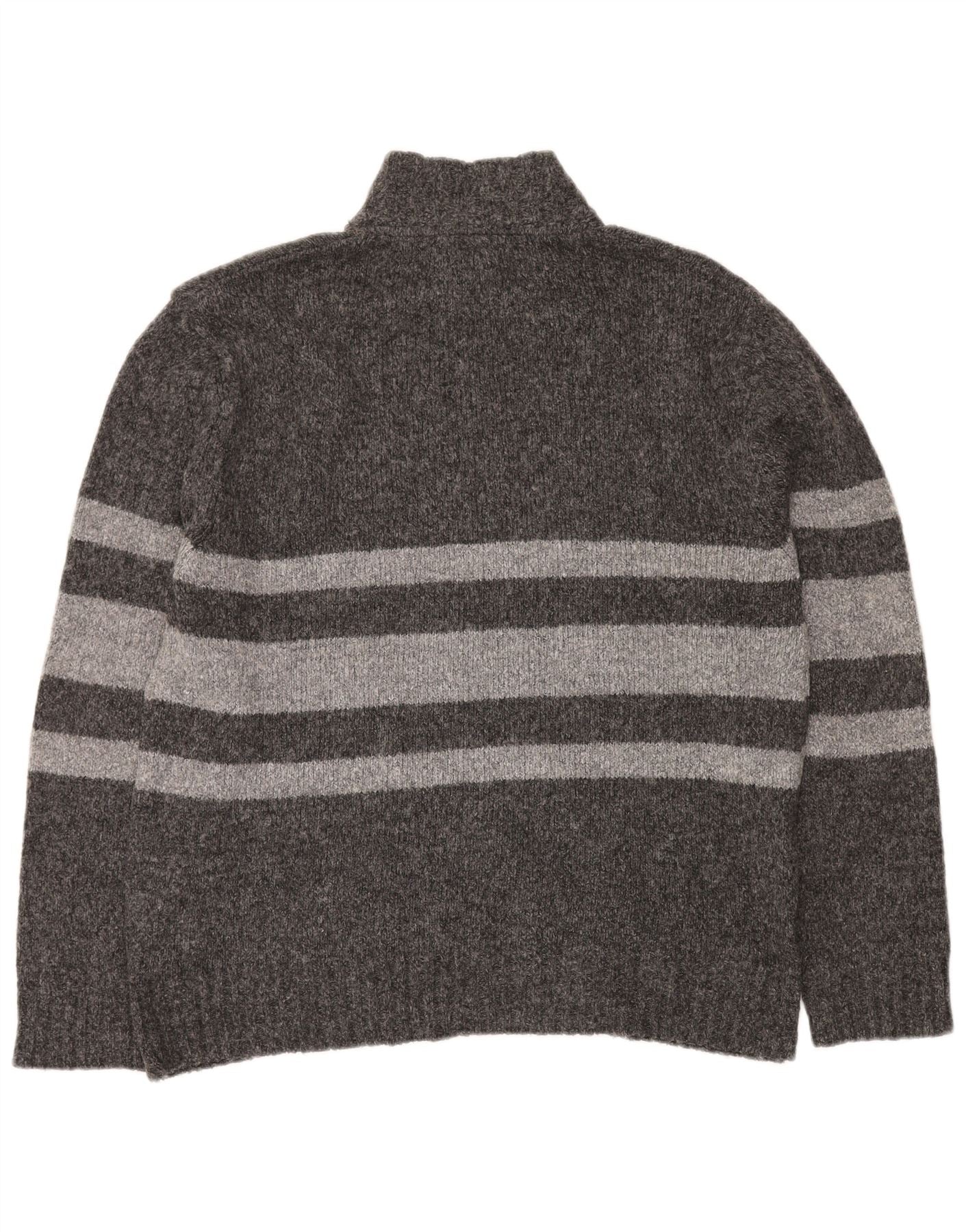 LEE Mens Cardigan Sweater Large Grey Striped Acrylic