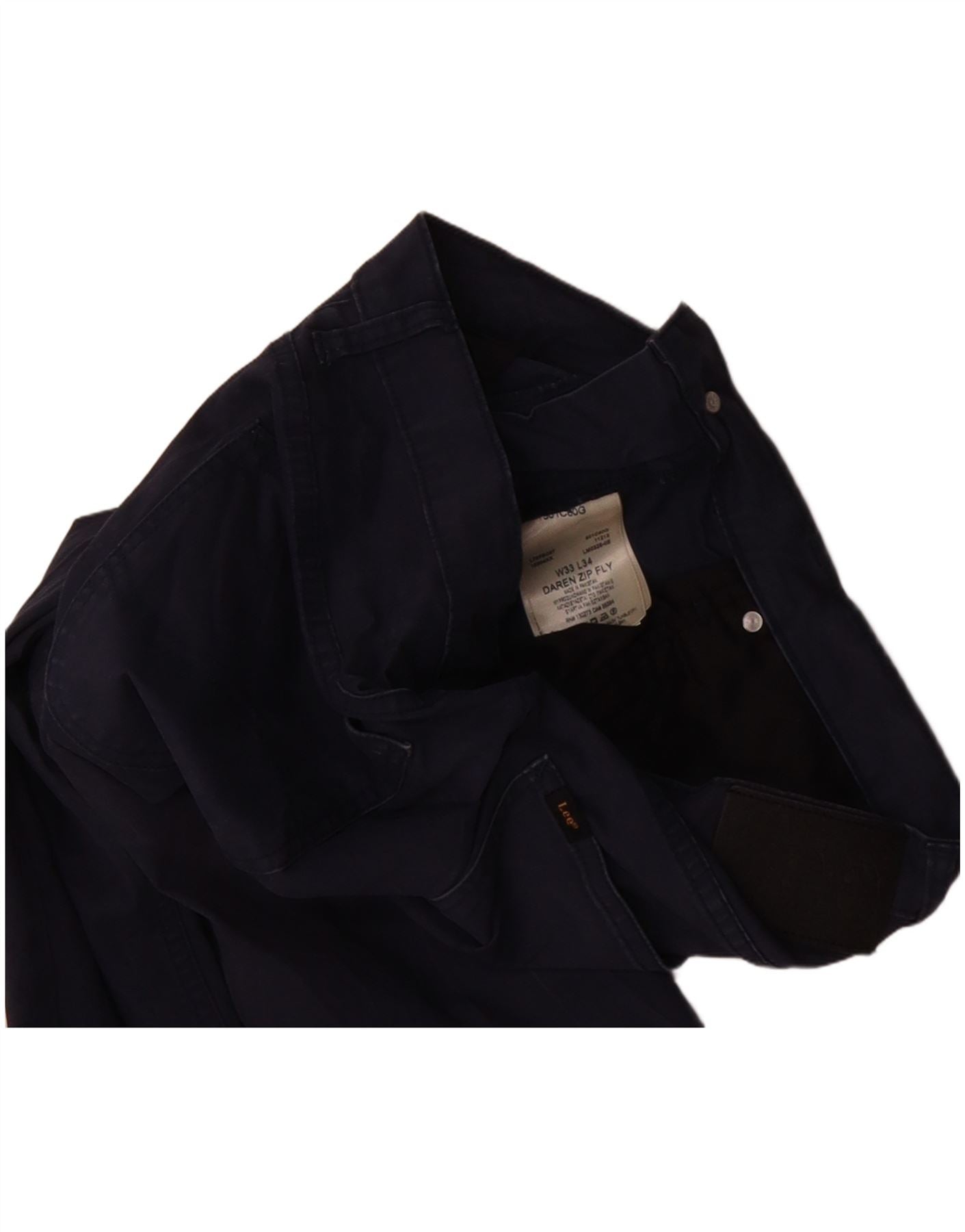 LEE Mens Daren Zip Fly Straight Casual Trousers W33 L34 Navy Blue Cotton
