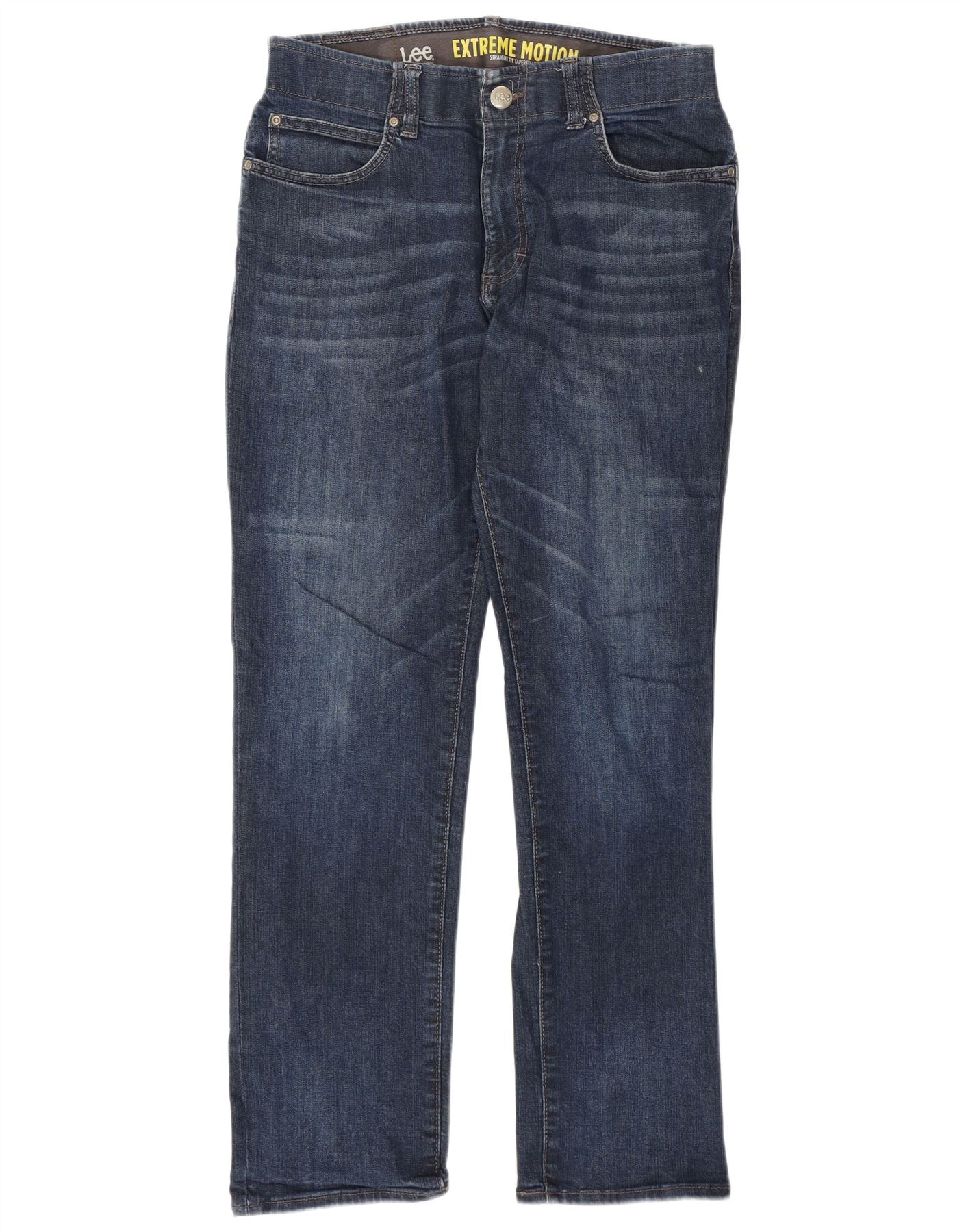 LEE Mens Extreme Motion Straight Tapered Jeans W32 L32 Navy Blue Cotton