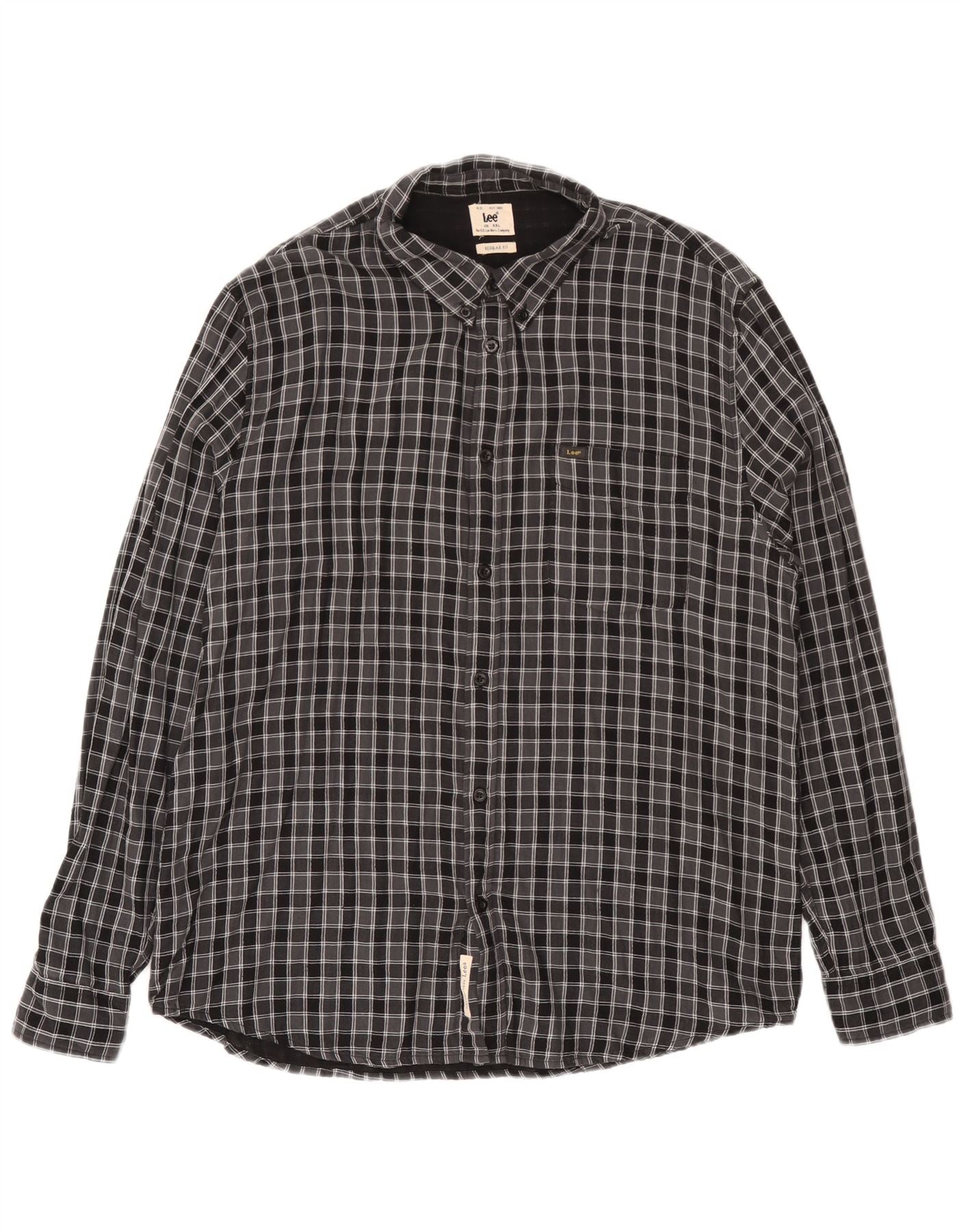 - AI Description: This Lee mens shirt is crafted from 100 percent cotton, featuring a classic black check weave. The collared neckline and full button-up front offer a timeless, smart appeal. Long sleeves finish with neat cuffs, enhancing the structured silhouette. A regular fit ensures comfortable wear. Subtle chest pockets add practical detail to this versatile garment.