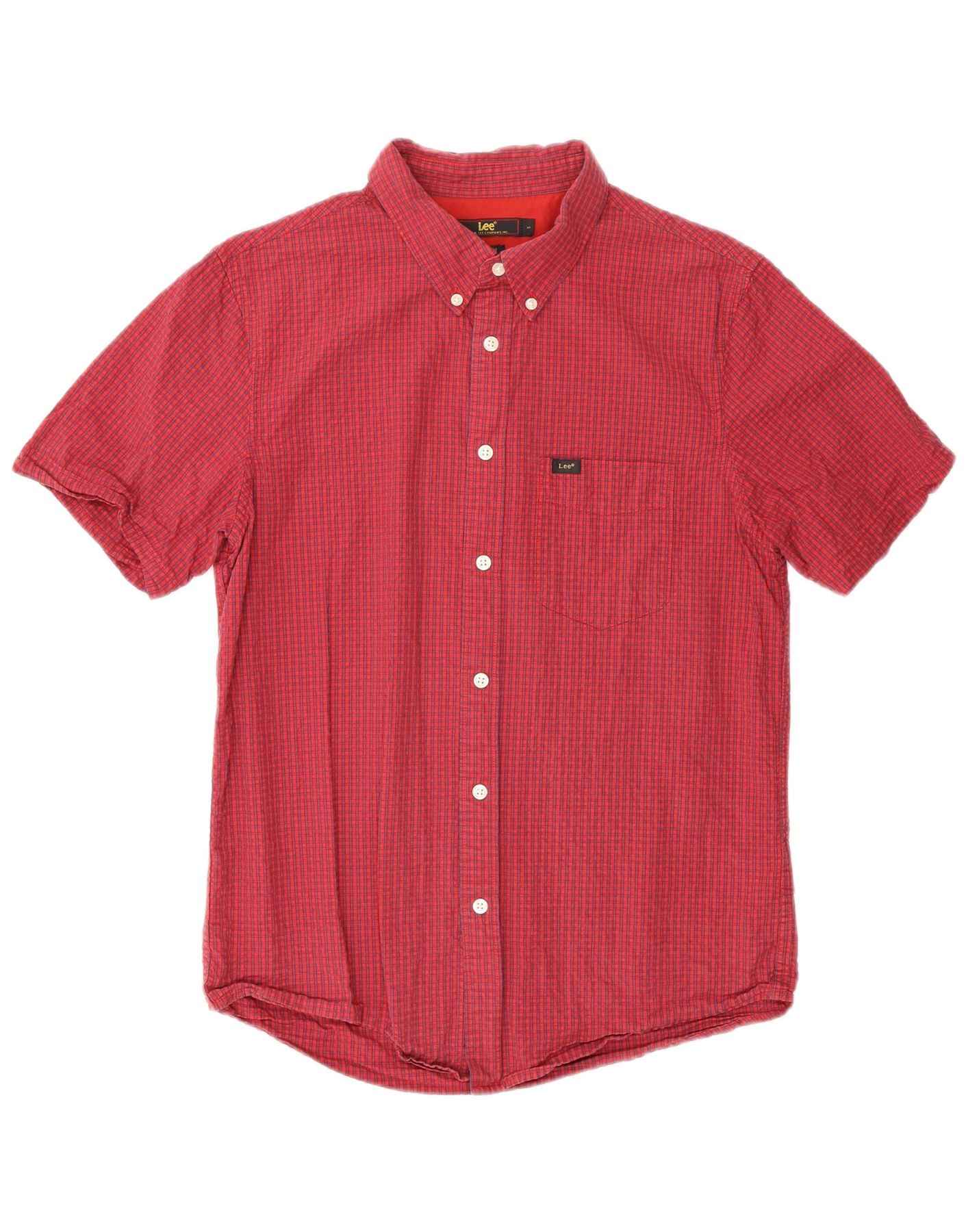 - AI Description: This Lee mens shirt is crafted from 100 percent woven cotton, offering a comfortable texture. It features a classic red check pattern. The collared neckline and short sleeves provide a smart, casual look. A full button-up front ensures a neat finish. It includes a practical chest pocket and a subtle brand logo. The regular fit offers comfortable wear, perfect for everyday style.