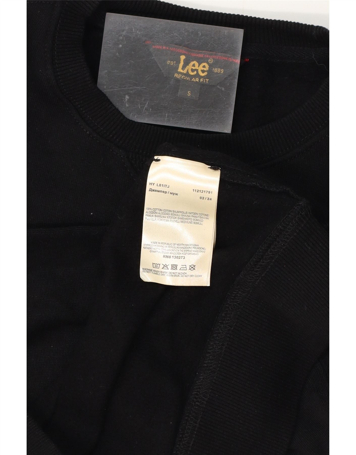 LEE Mens Regular Fit Sweatshirt Jumper Small Black Cotton