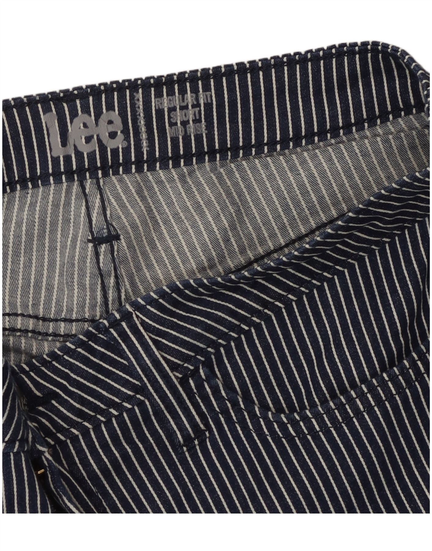 Lee Womens Mid Rise Regular Fit Casual Shorts W34 Large Navy Blue Striped