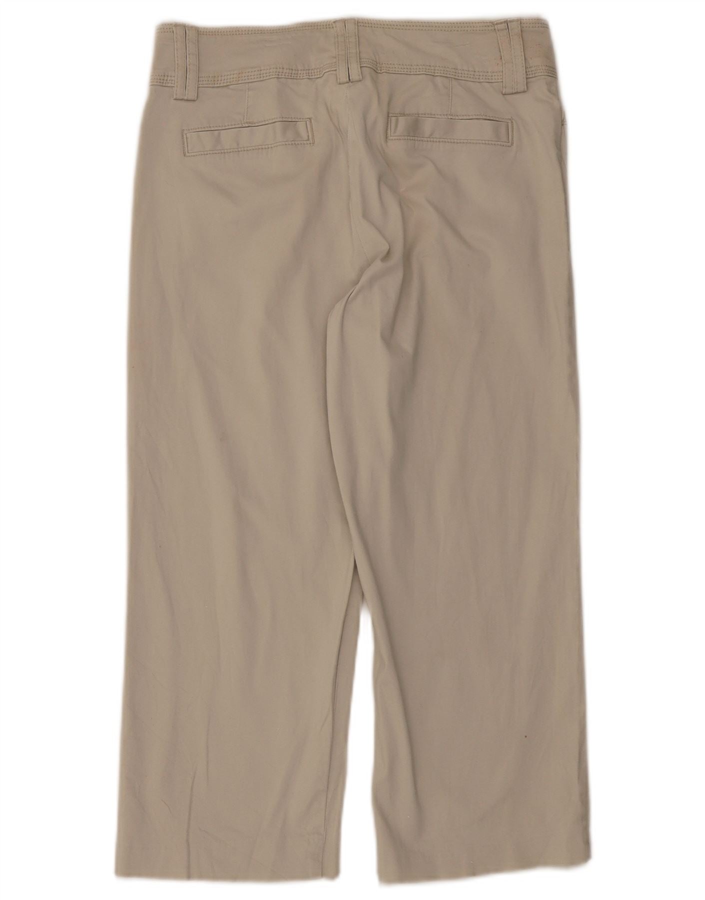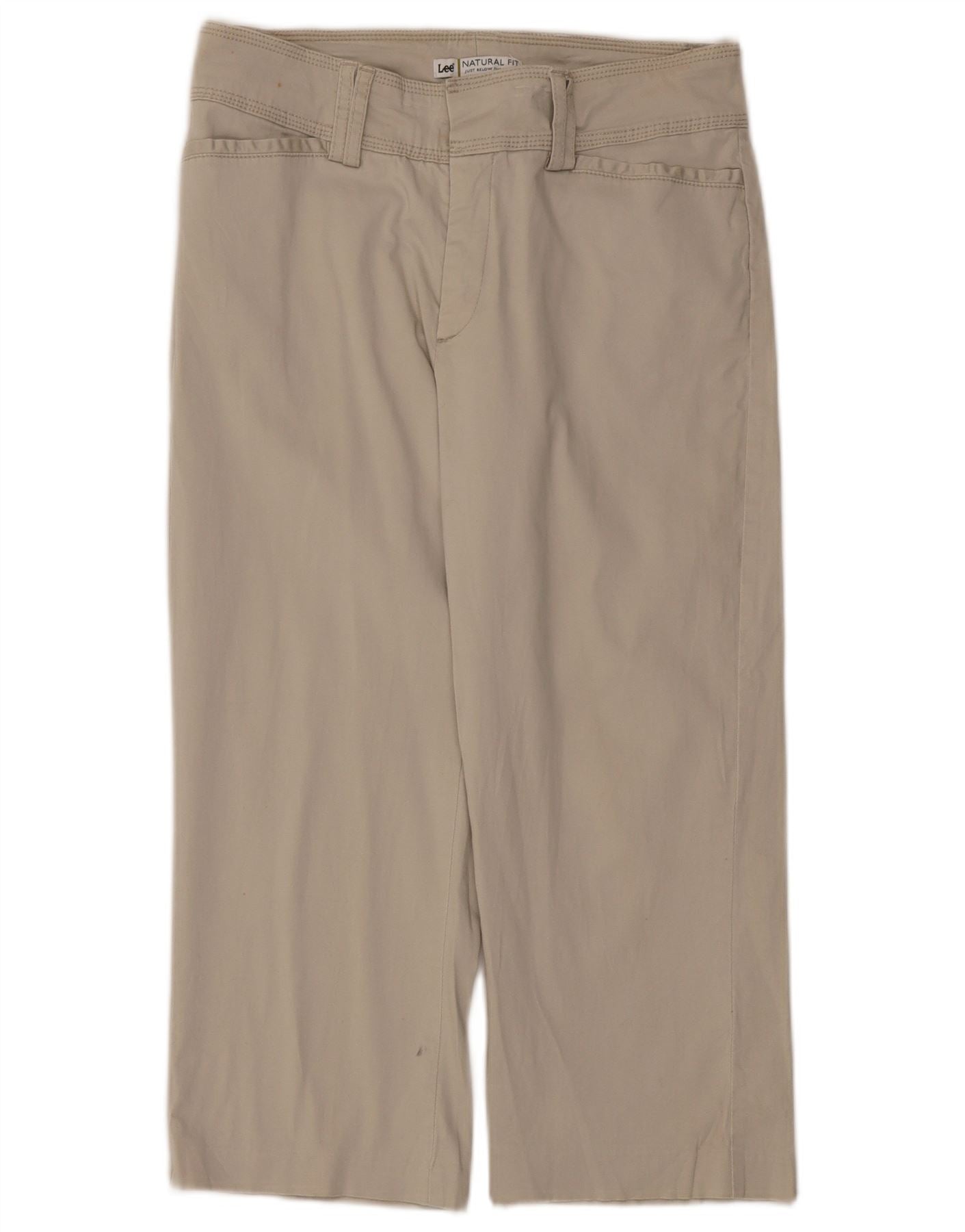 - AI Description: These Lee women's Capri Trousers are crafted from a comfortable beige cotton blend with a woven finish. The fabric offers a slight stretch for ease. They feature a low waist and a regular fit, with straight legs that finish at a cropped length. A button and zip closure secures the front. Practical pockets add functionality. This design prioritises comfort and a clean, unpatterned aesthetic.