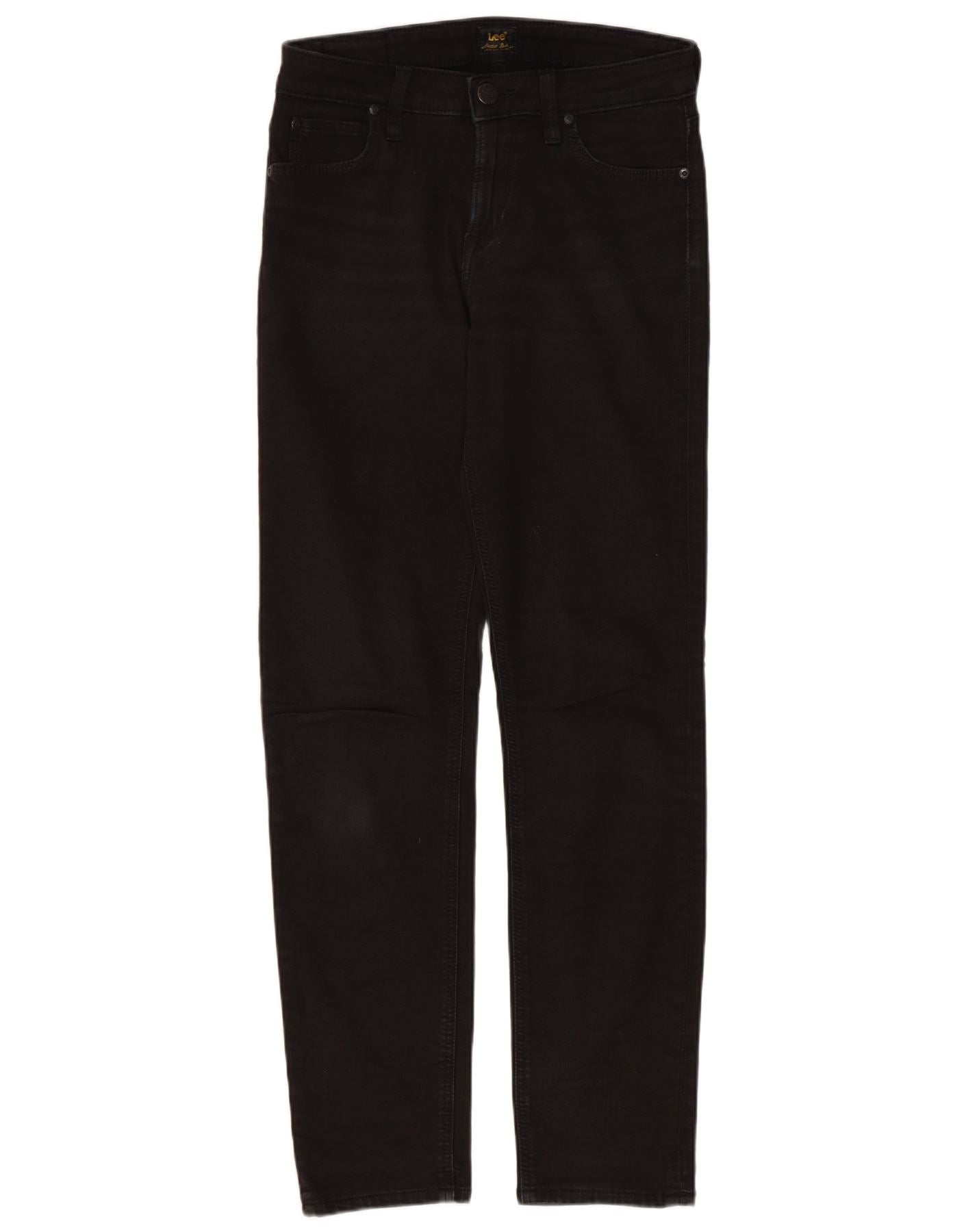 - AI Description: This Lee womens Straight Jeans are crafted from black stretch denim, offering both comfort and a sleek look. They feature a classic mid rise waist and a secure zip closure. The straight leg cut provides a timeless, regular fit. Practical pockets are included, and a subtle brand logo accent adds a signature touch.