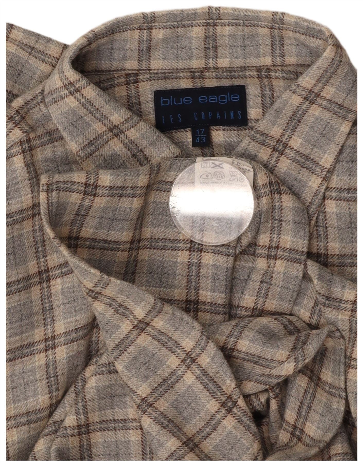 LES COPAINS Mens Flannel Shirt Size 17 43 XL Grey Check Cotton