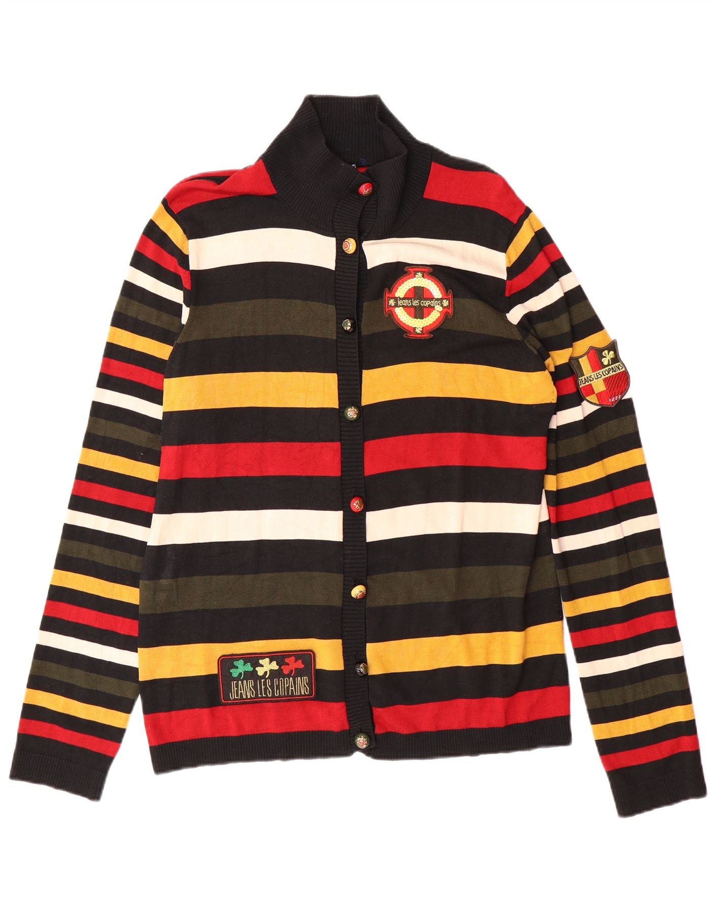 LES COPAINS Womens Cardigan Sweater IT 46 Large Multicoloured Striped Silk