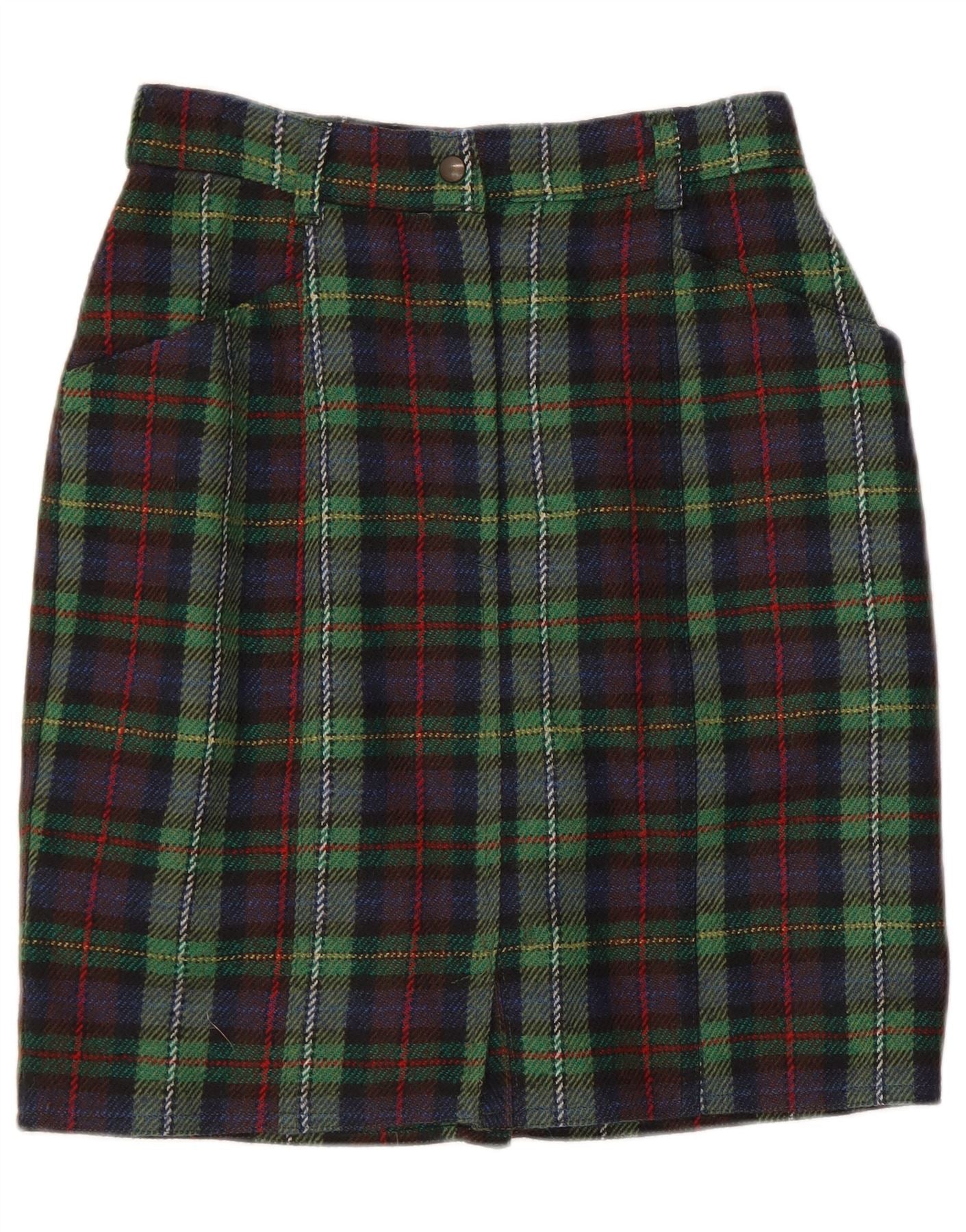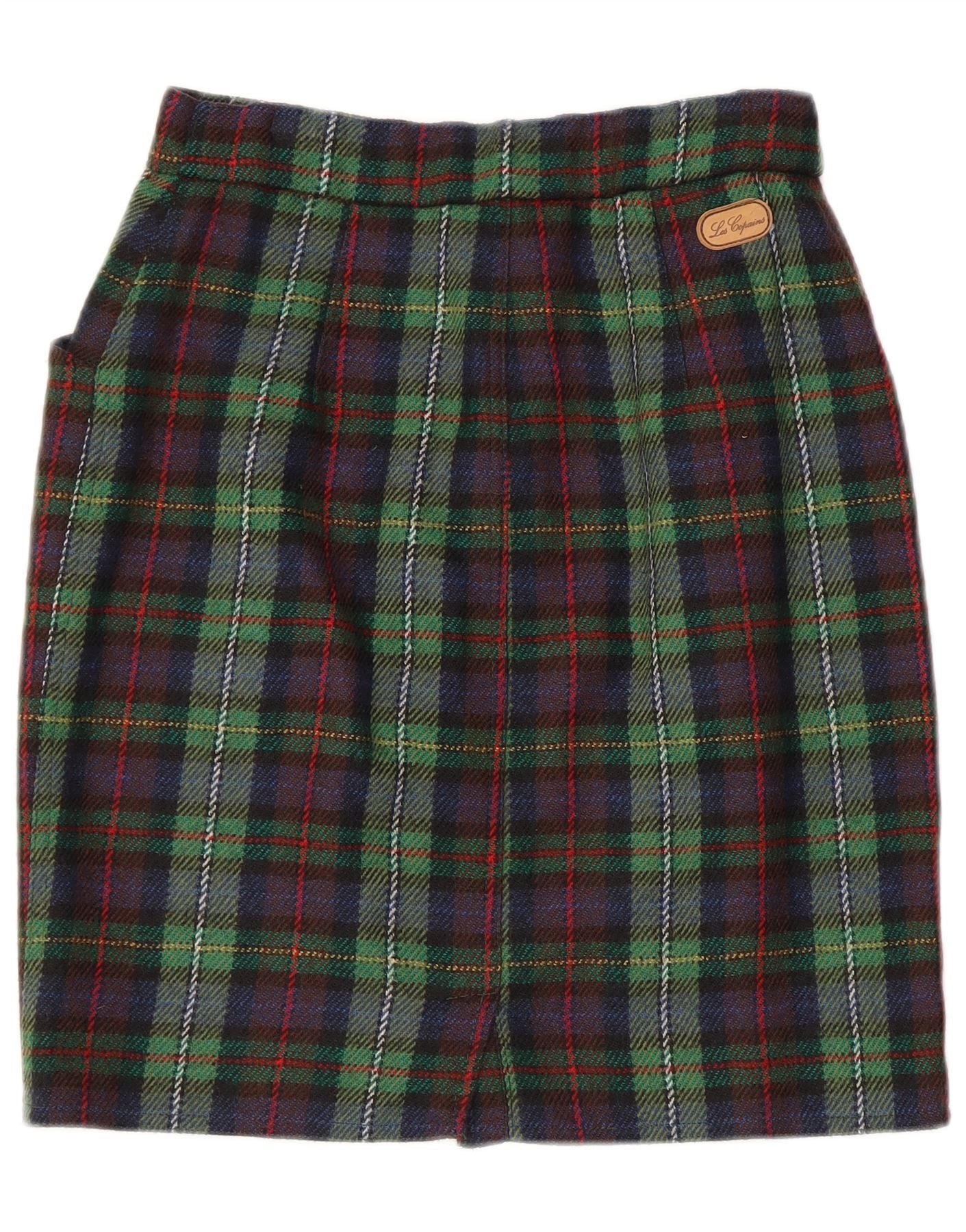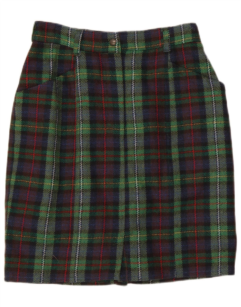 LES COPAINS Womens High Waist Pencil Skirt W28 Medium Green Plaid Wool