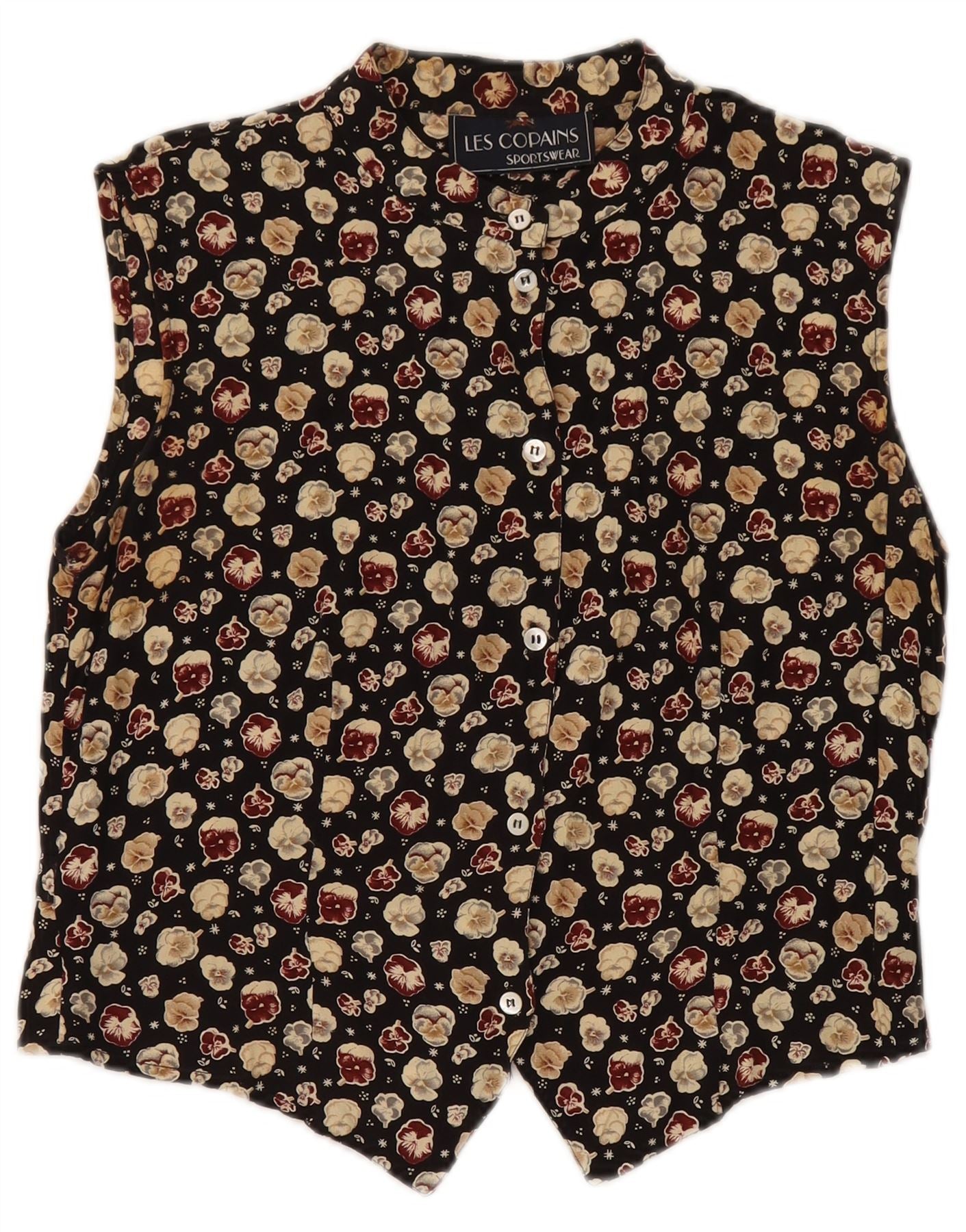 LES COPAINS Womens Sleeveless Shirt Blouse UK 12 Medium Black Floral