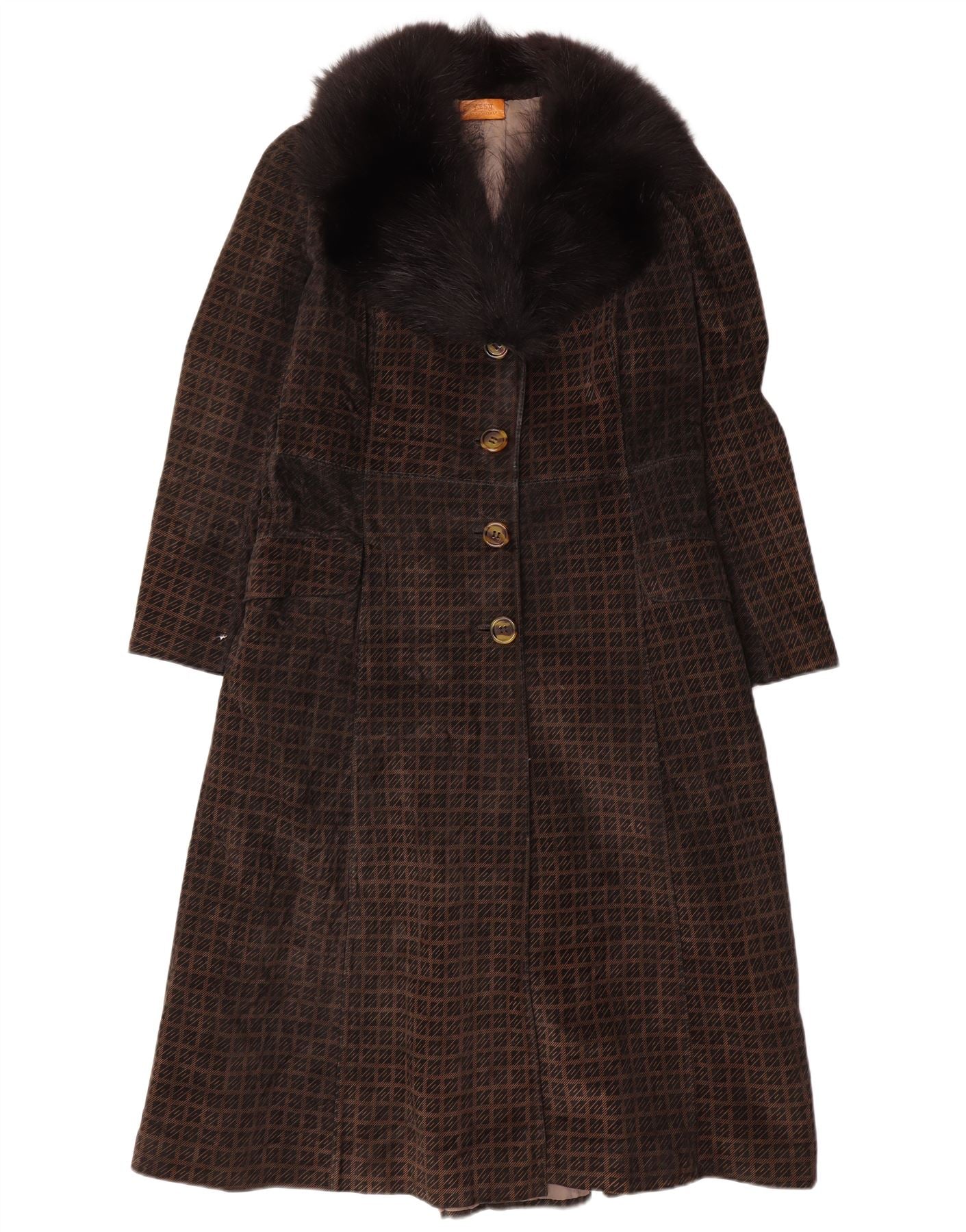 Lesy Womens Overcoat UK 14 Medium Brown Geometric
