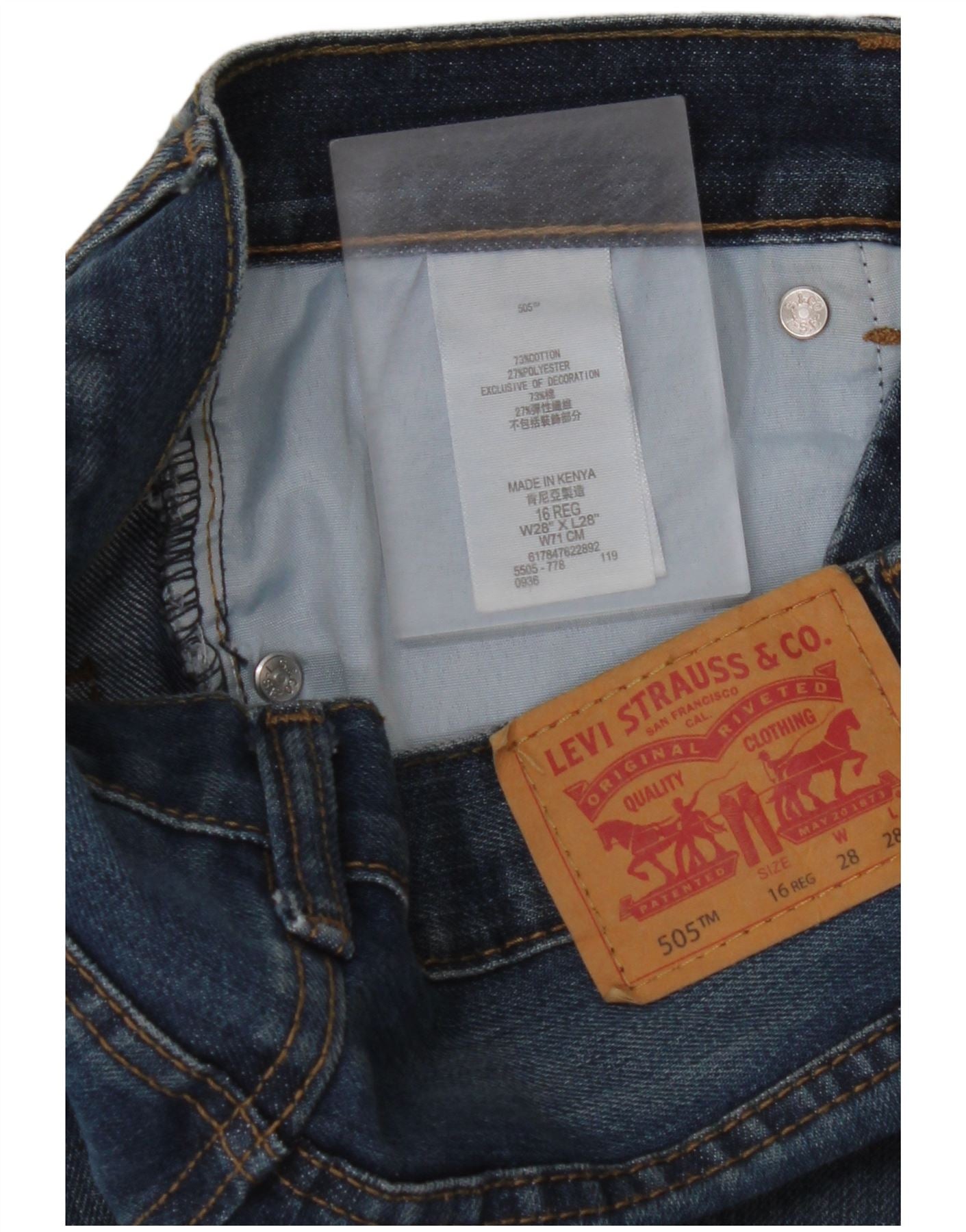 LEVI'S Boys 505 Regular Straight Jeans 15-16 Years W28 L28 Blue Cotton