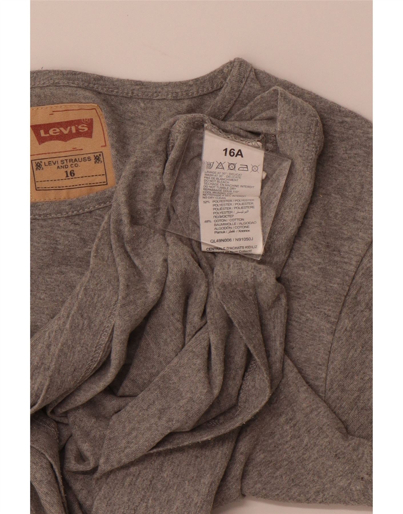 LEVI'S Girls Graphic T-Shirt Top 15-16 Years Grey Polyester