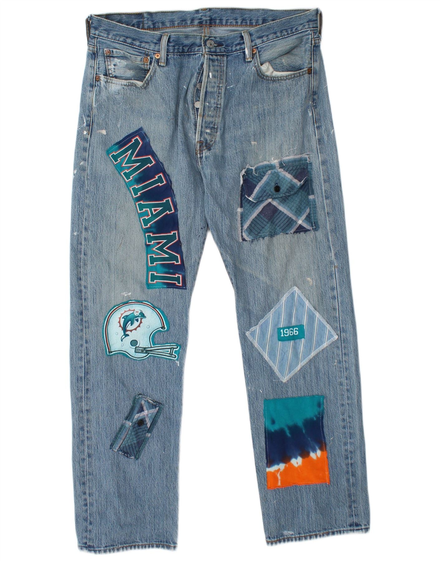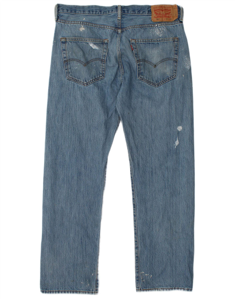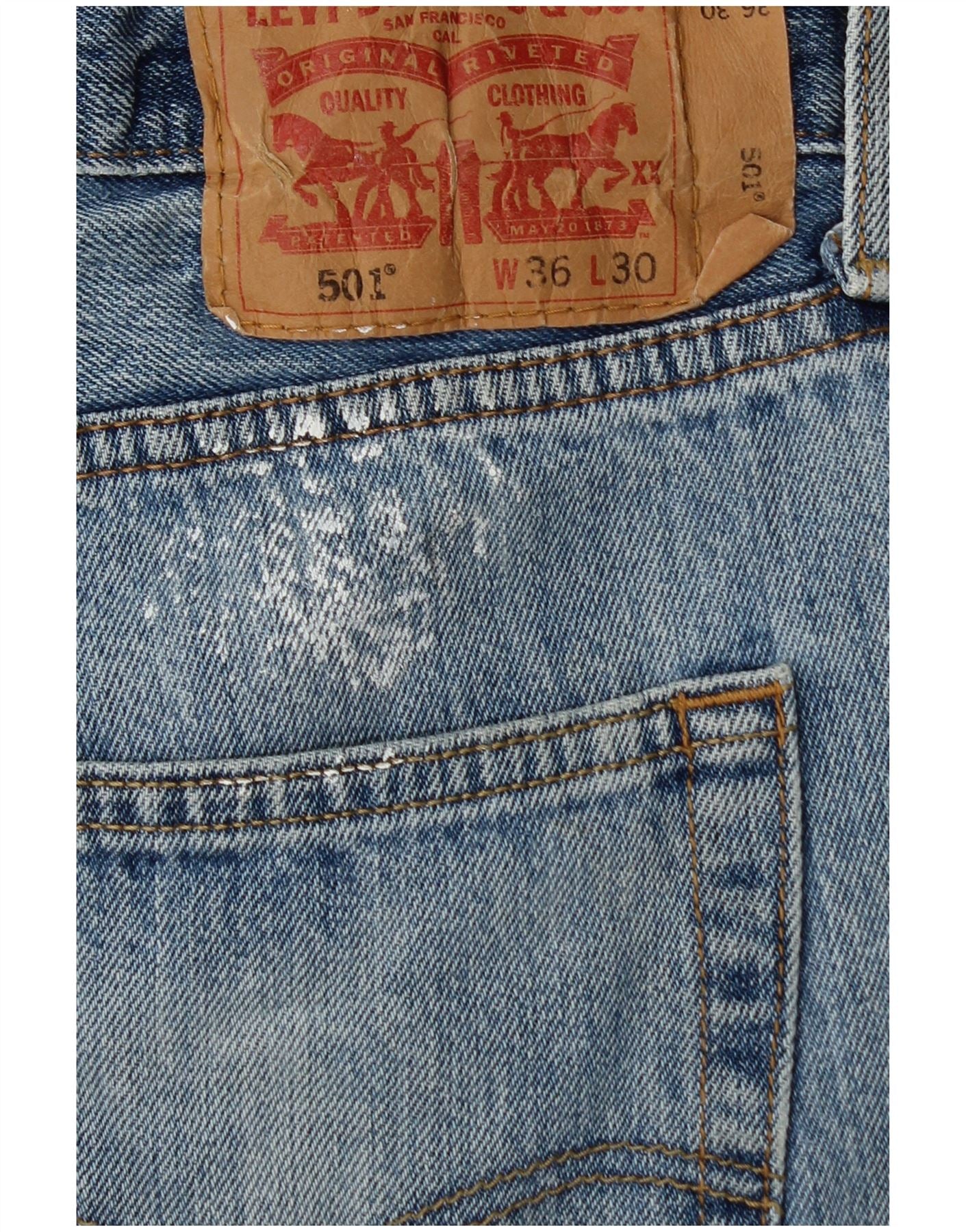 LEVI'S Mens 501 Graphic Straight Jeans W36 L30 Blue Patchwork Cotton