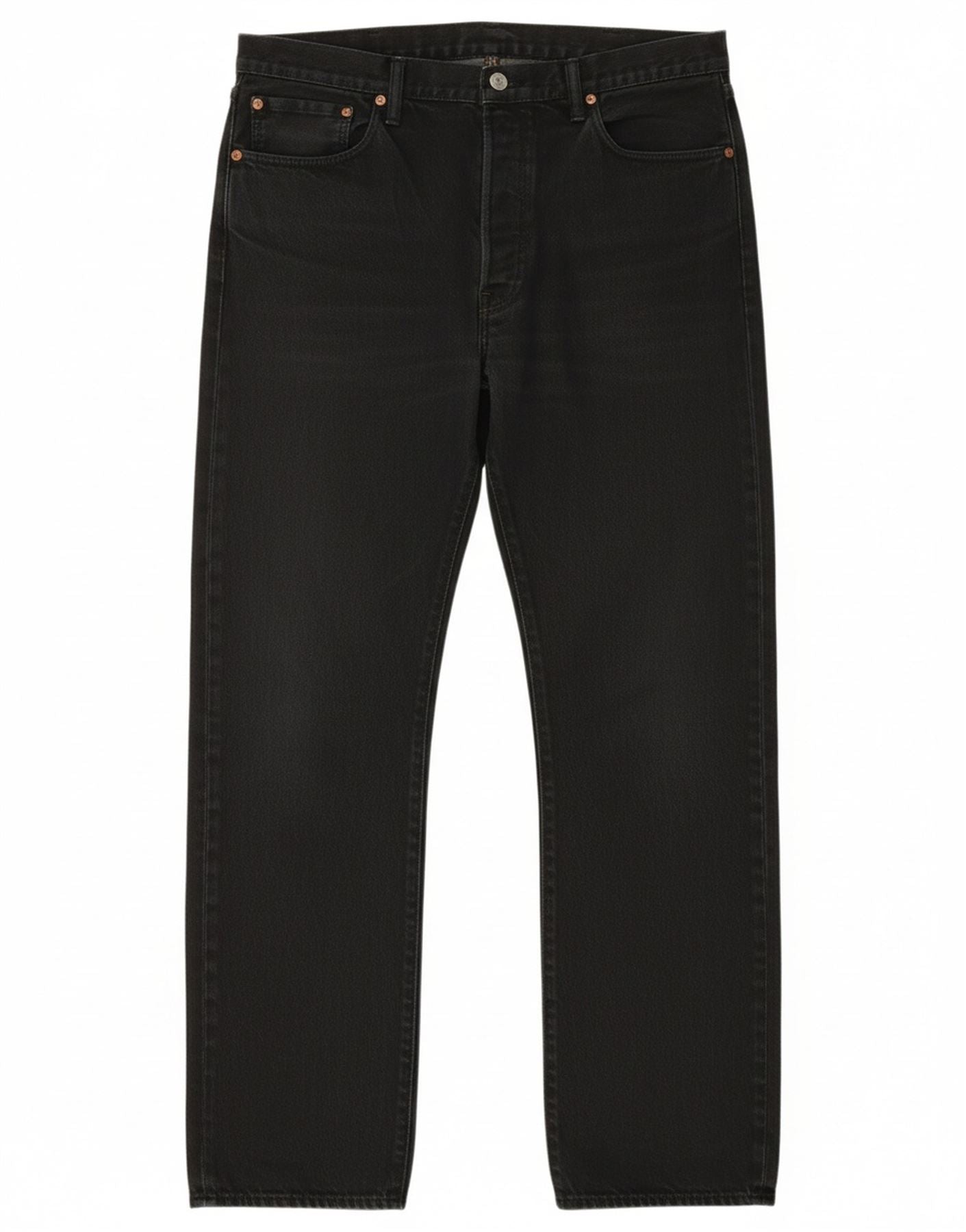- AI Description: This Levi's men's Straight Jeans are crafted from 100 percent black cotton denim. These classic 501 jeans feature a regular fit and a high waist. The straight leg offers a timeless silhouette. A button closure secures the front. Practical pockets complete the design. The dark black hue provides versatile styling for any wardrobe. This enduring style embodies comfort and classic appeal.