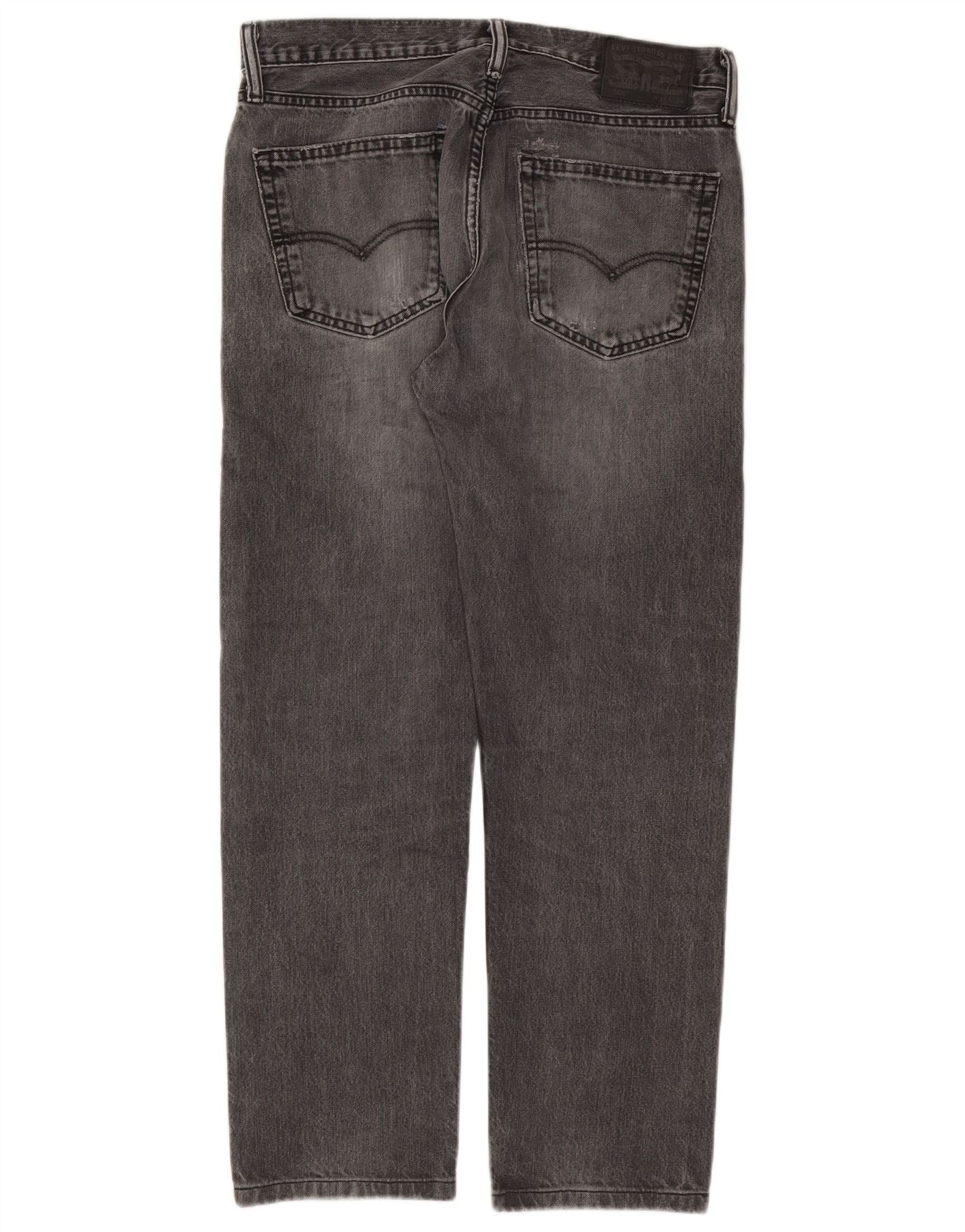 - AI Description: These Levis mens straight jeans are crafted from grey denim with a classic, distressed finish. They feature a regular fit and a zip closure for ease. The straight leg cut offers a timeless silhouette. Functional pockets are included. A subtle brand logo accent completes the design.